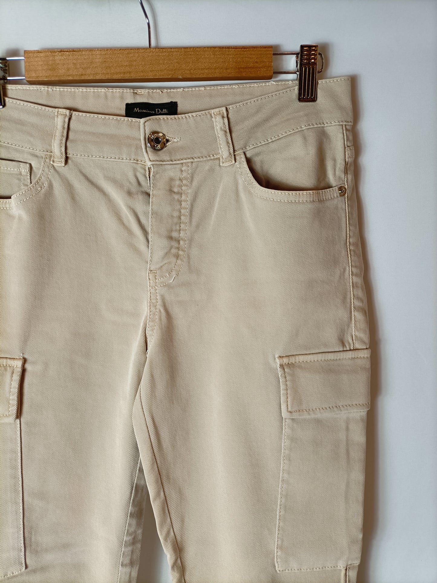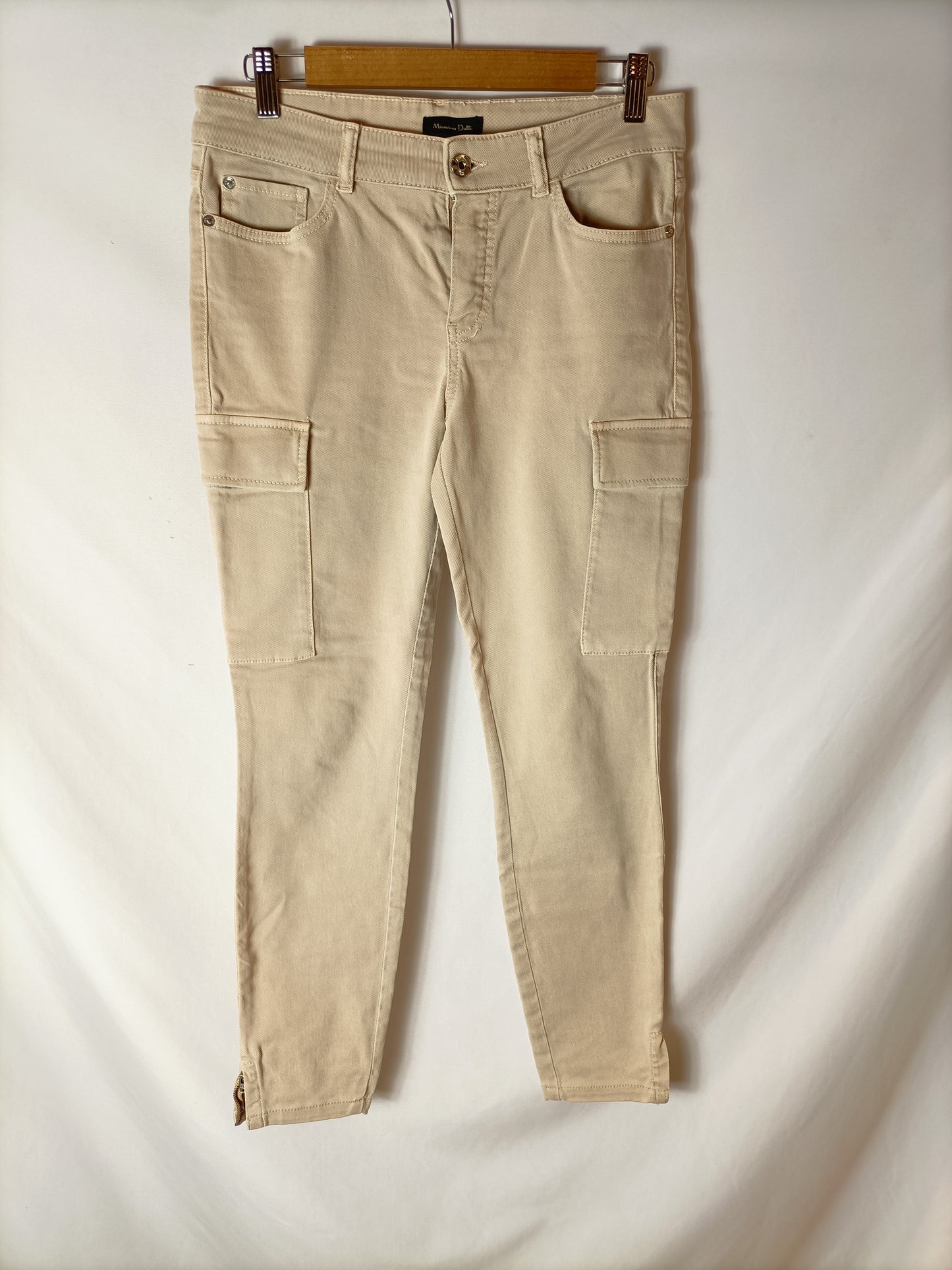 MASSIMO DUTTI. Pantalones beige bolsillos. T 38