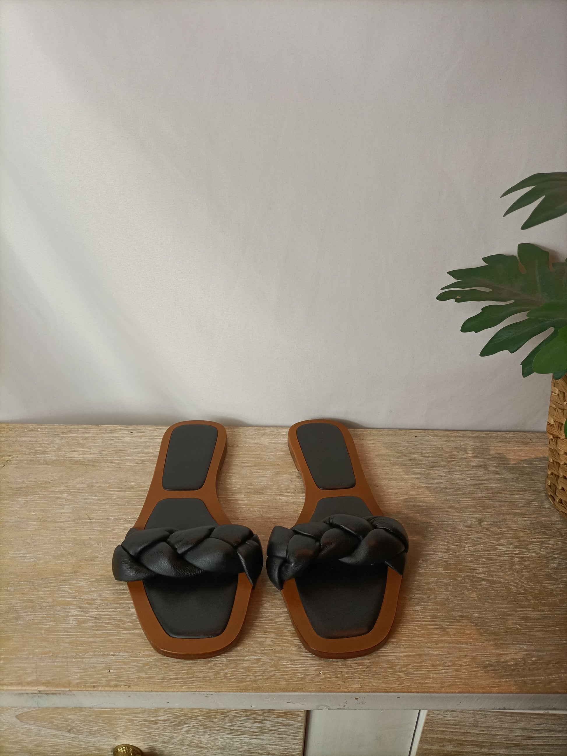 MASSIMO DUTTI. Sandalias planas tira trenzada negra. T 40