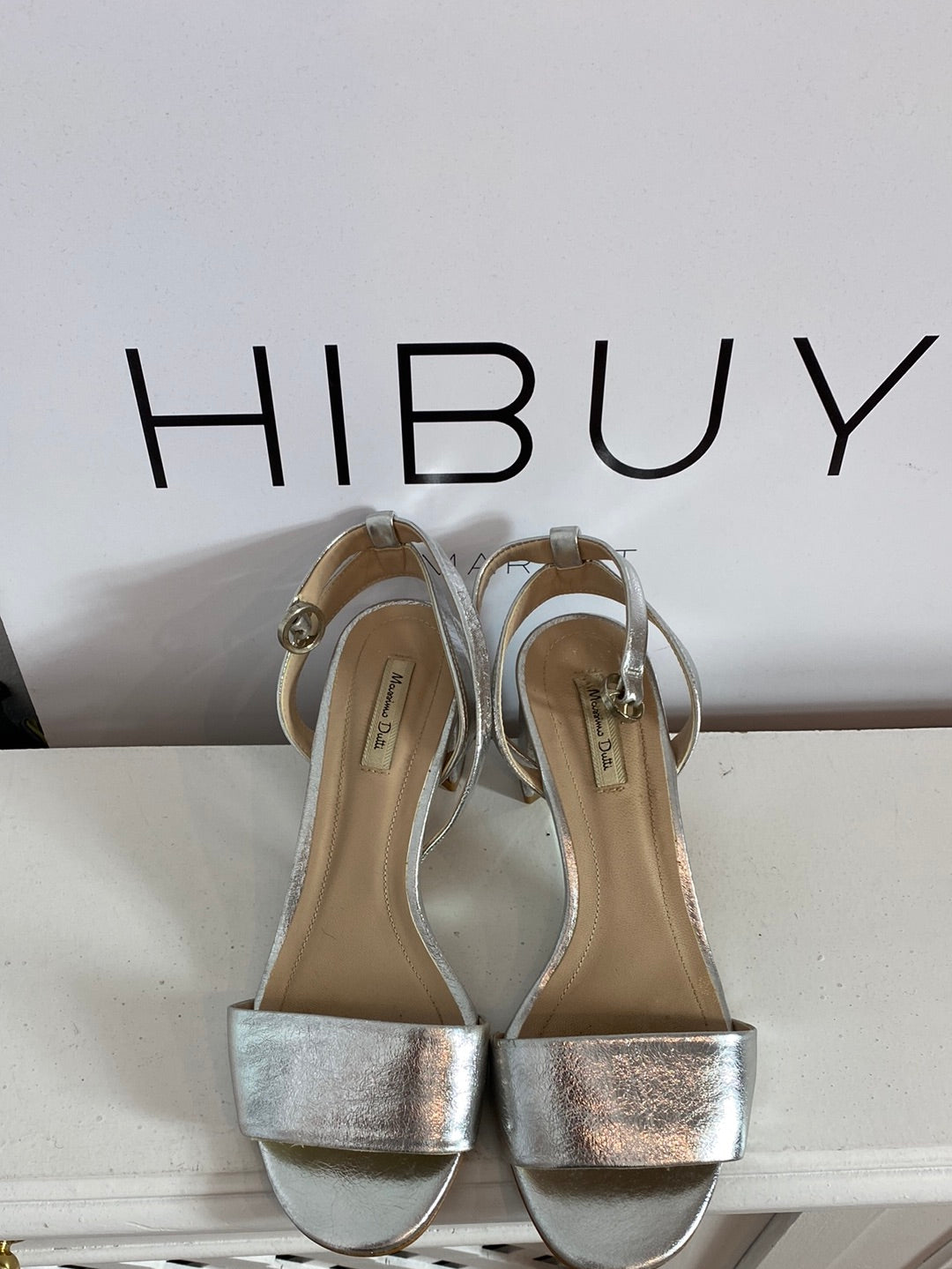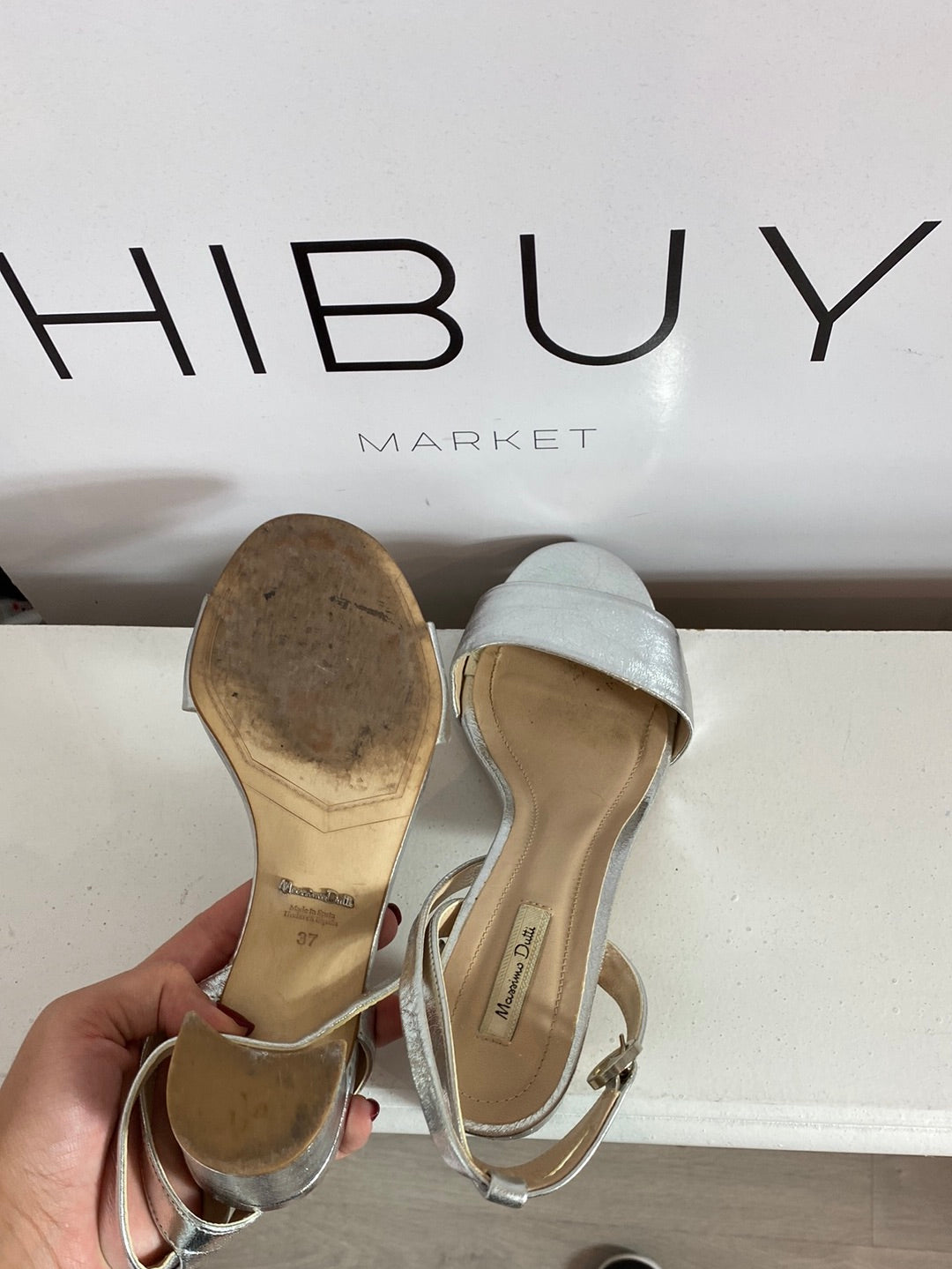 MASSIMO DUTTI. Sandalias tacón plateadas. T.37