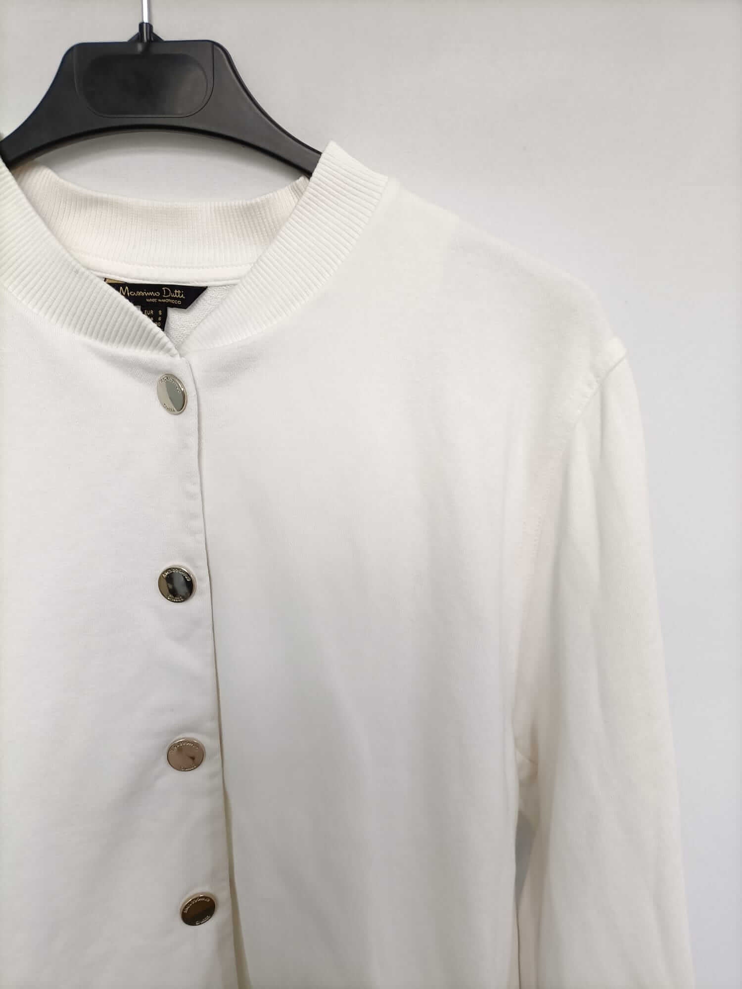 Massimo Dutti. S. Sudadera estilo bomber blanco roto con botones de clip. Elástica. Largo 58 cm