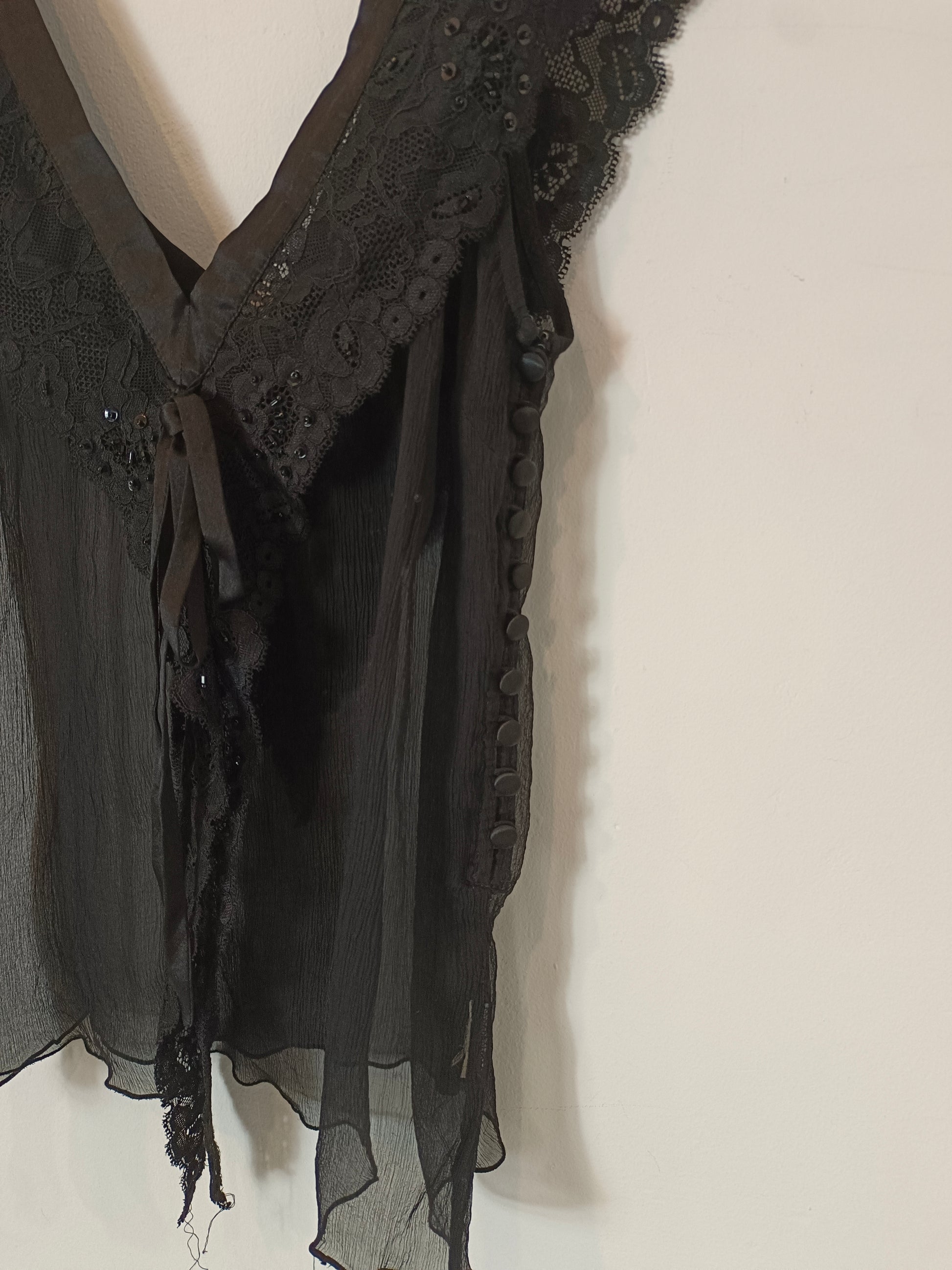MASSIMO DUTTI. Top lencero negro TU(S)