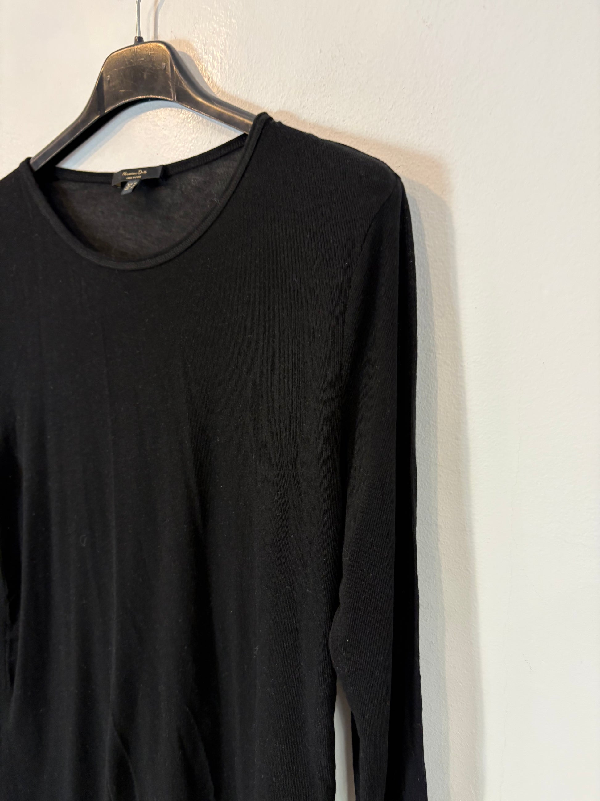 MASSIMO DUTTI. Top negro manga larga con lana. T M