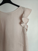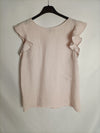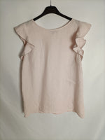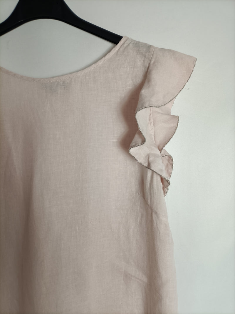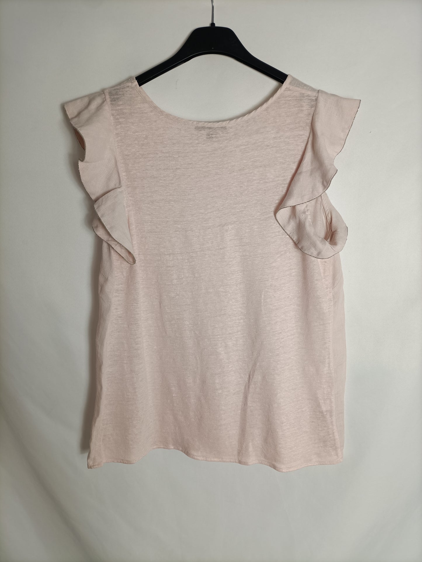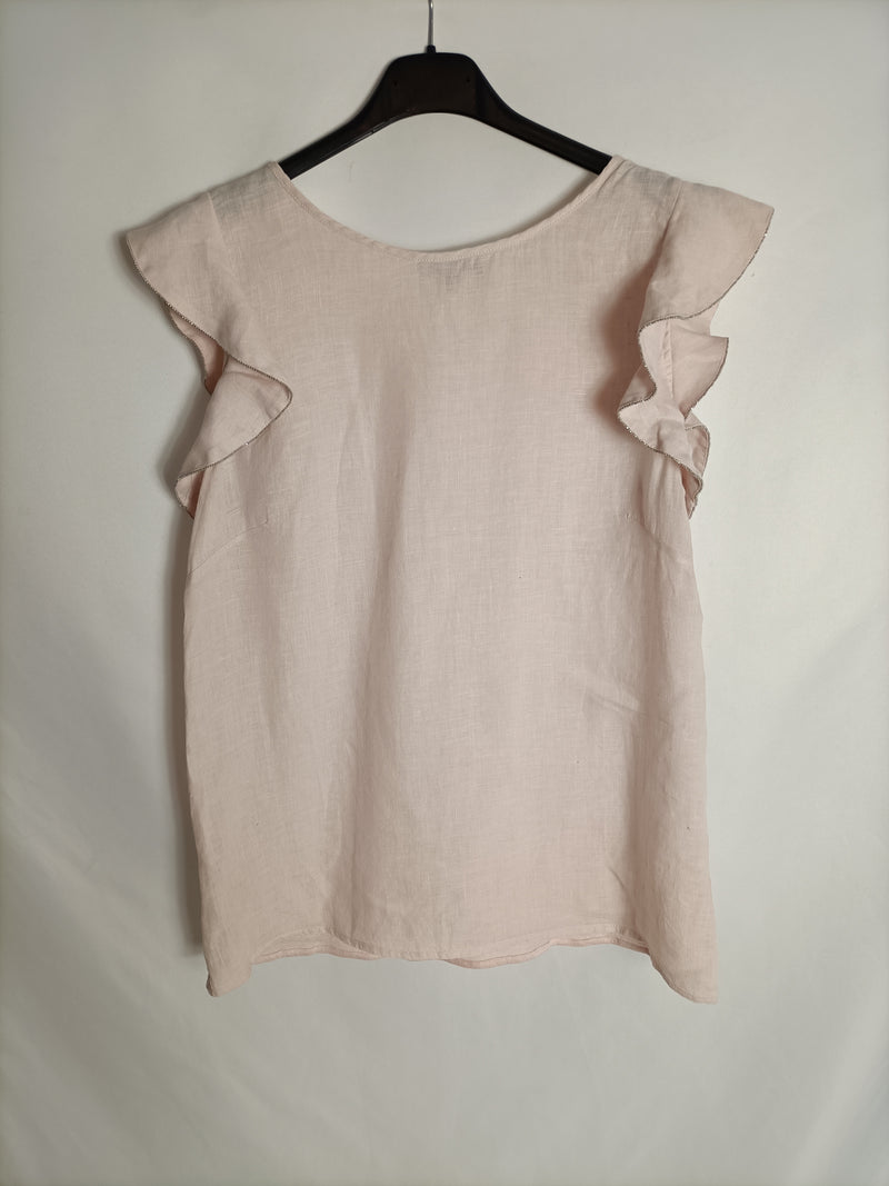 Top rosa de lino doble textura. volante en las mangas. elástico