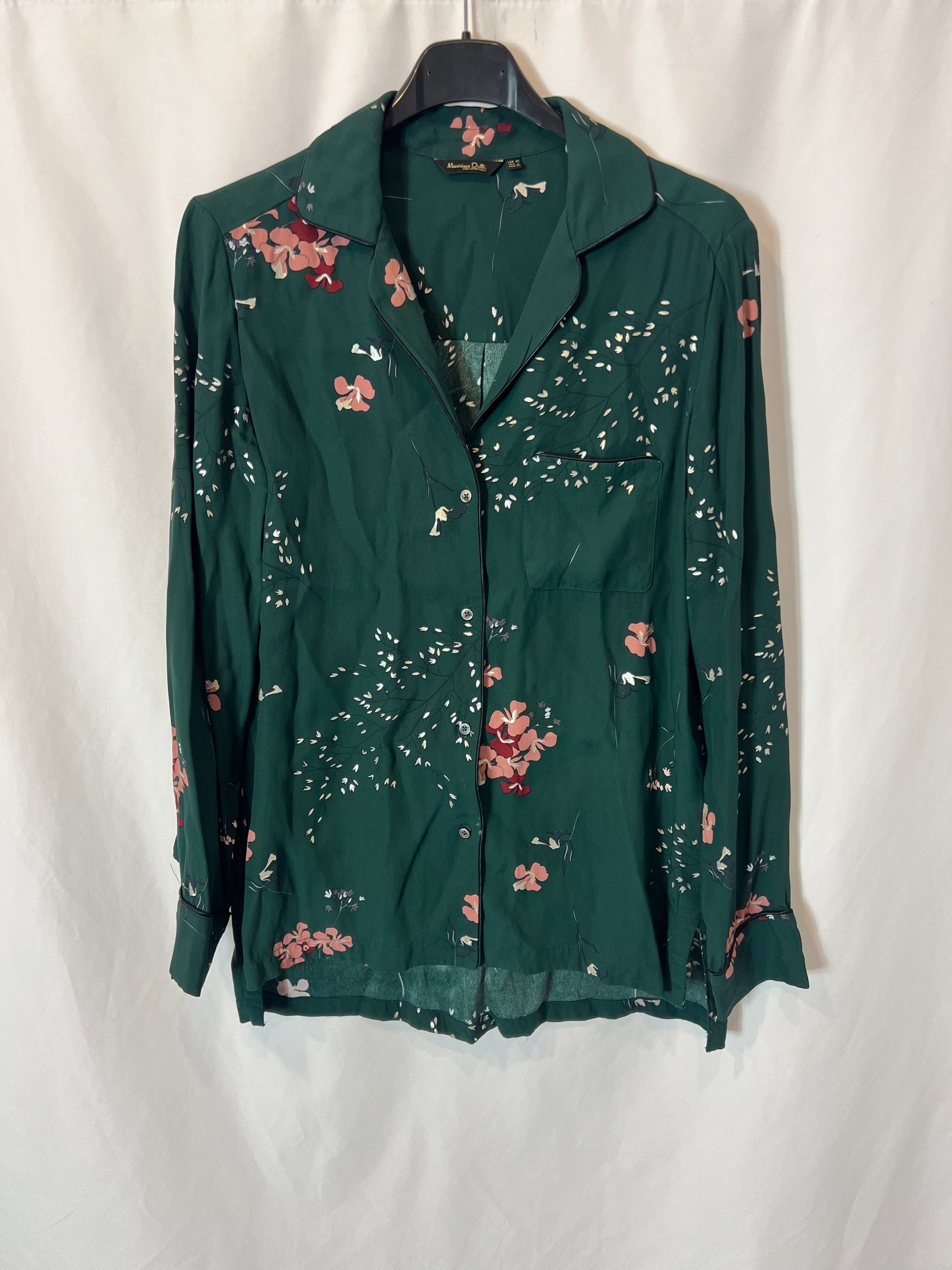 MASSIMO DUTTI. Total look verde flores T.36/38