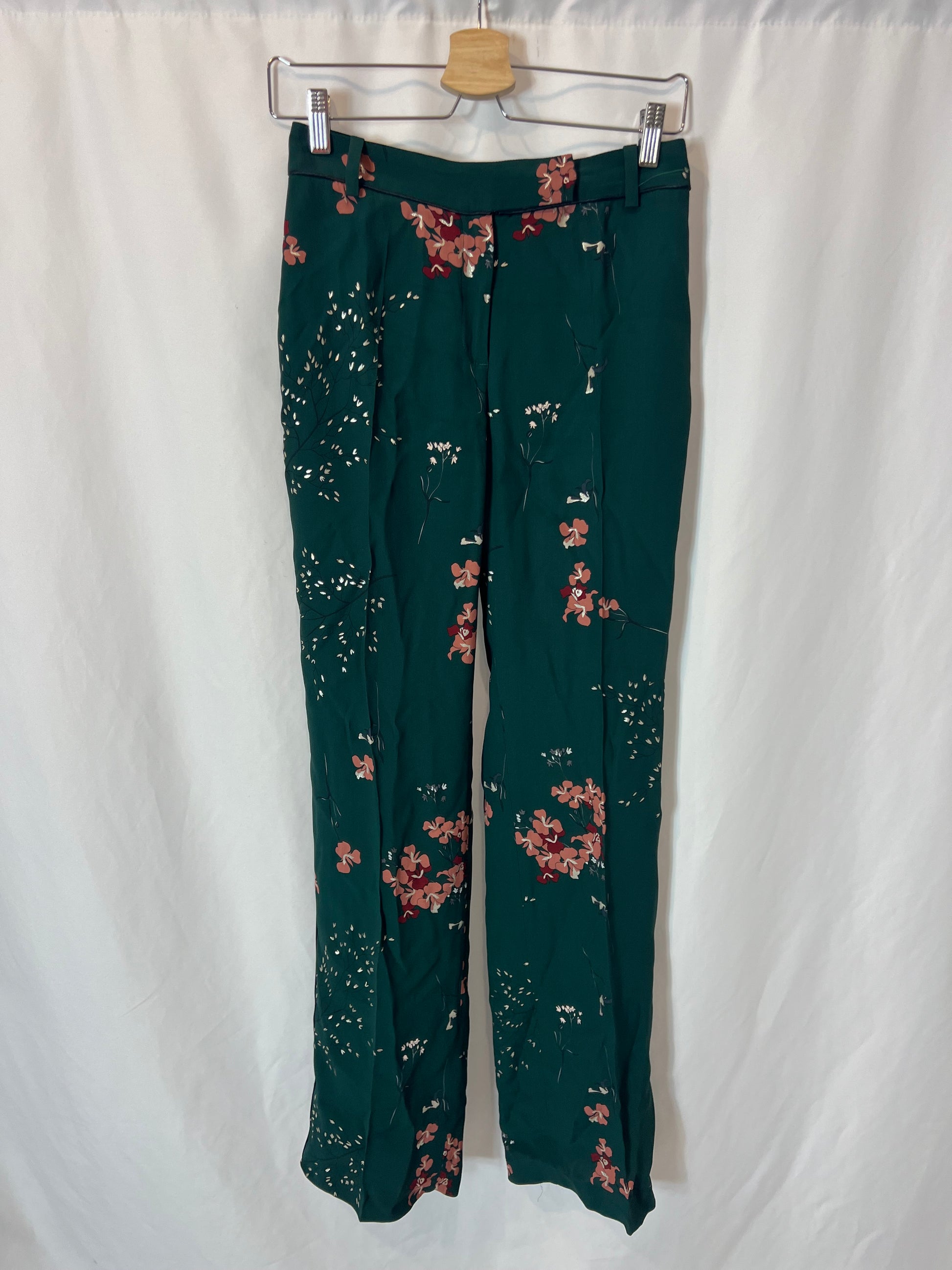 total look pantalón (38) y blusa (36) verde fluido con estampado de flores