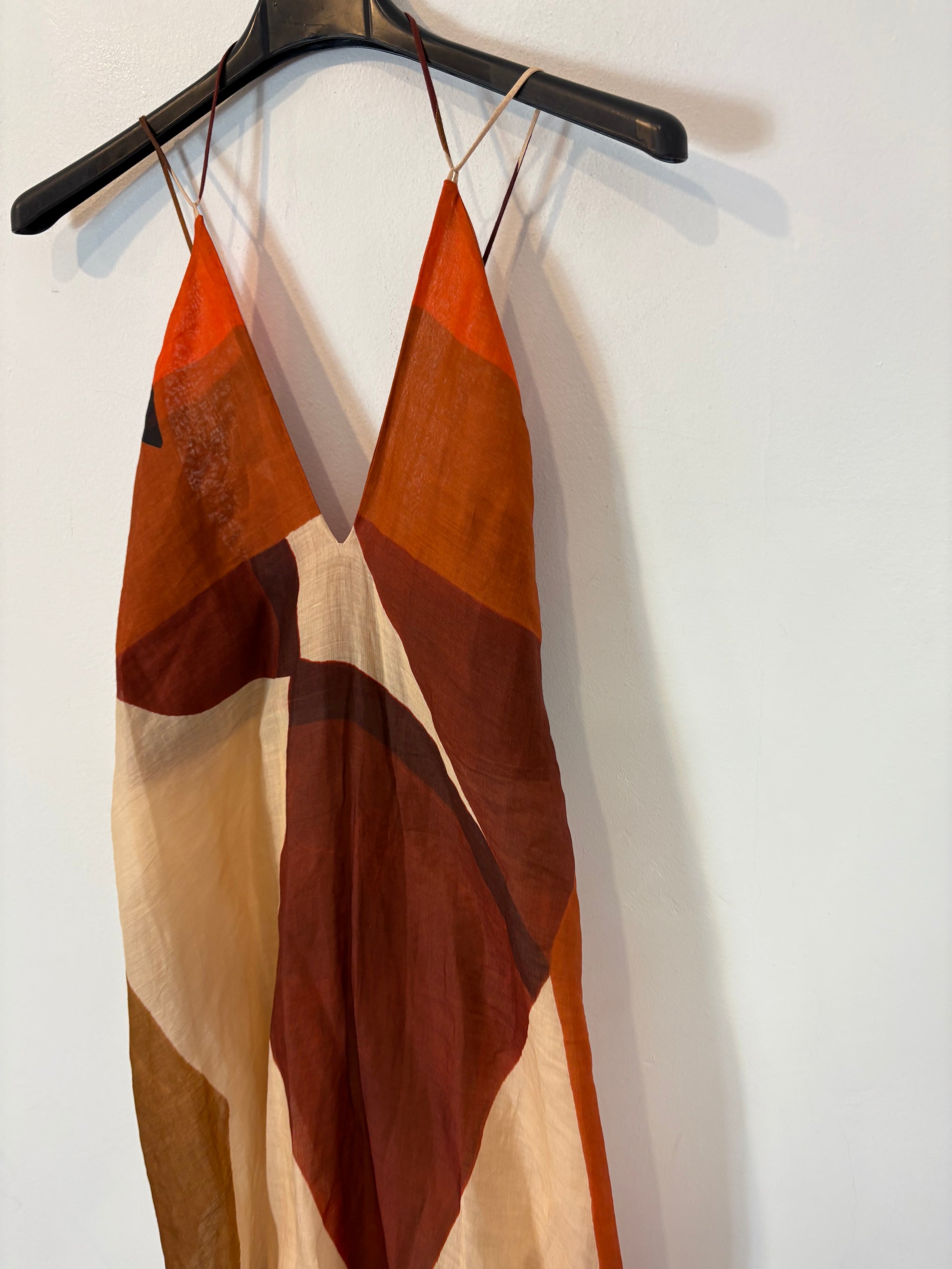 MASSIMO DUTTI. Vestido largo estampado geométrico