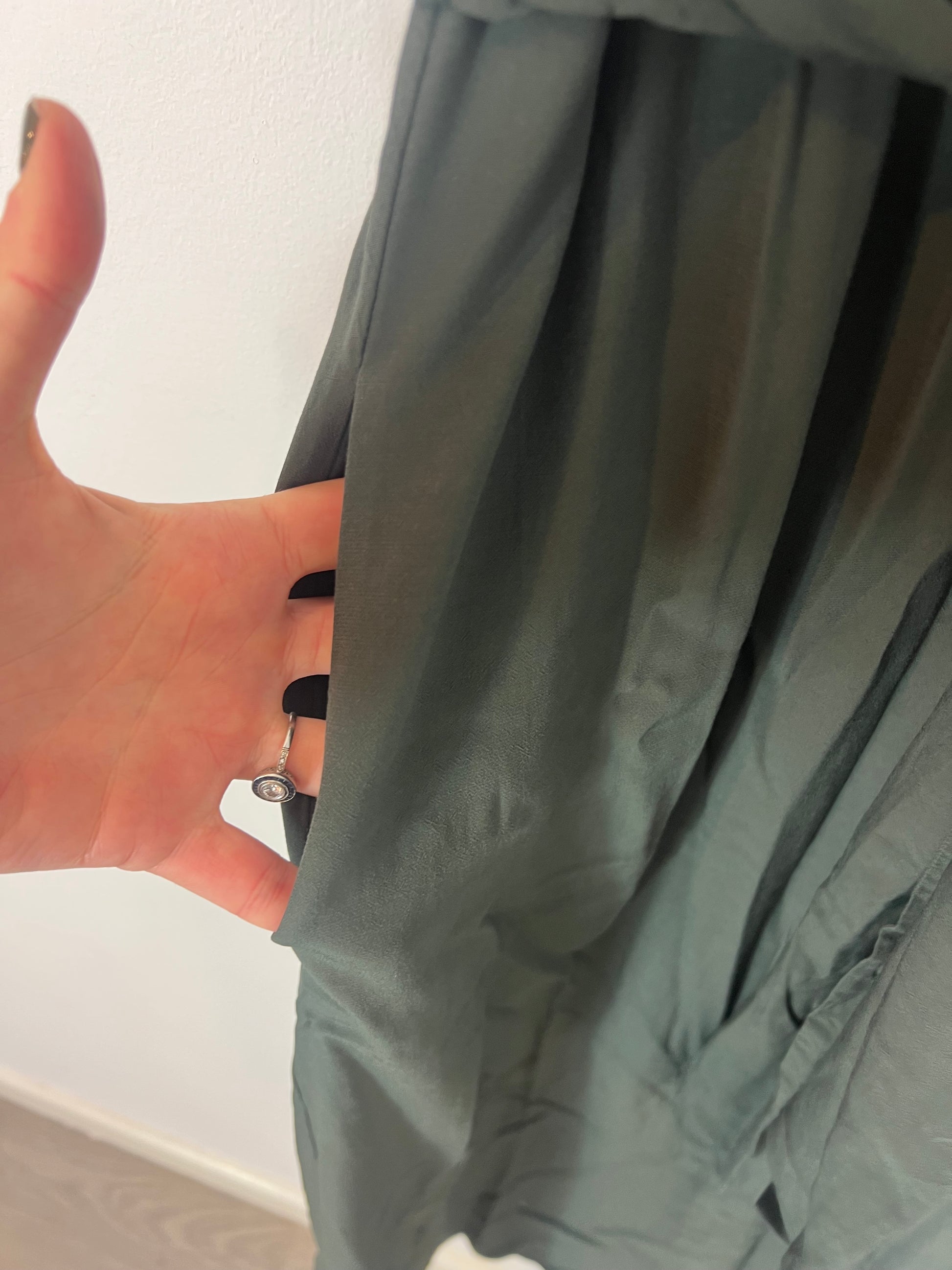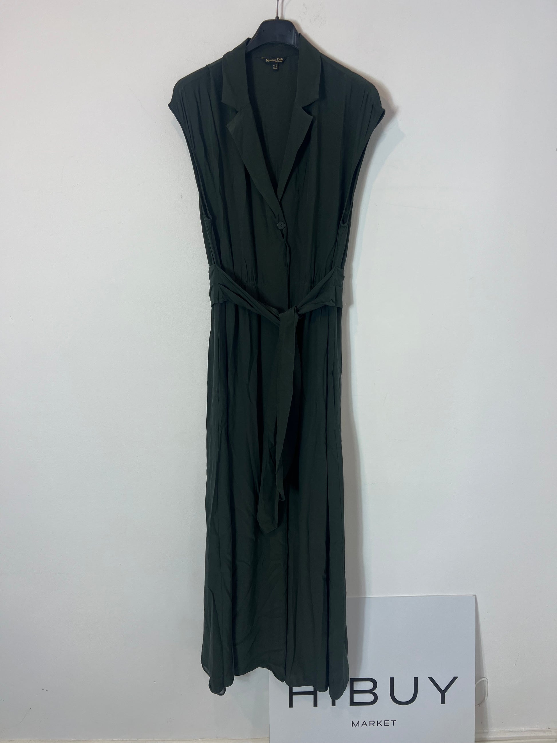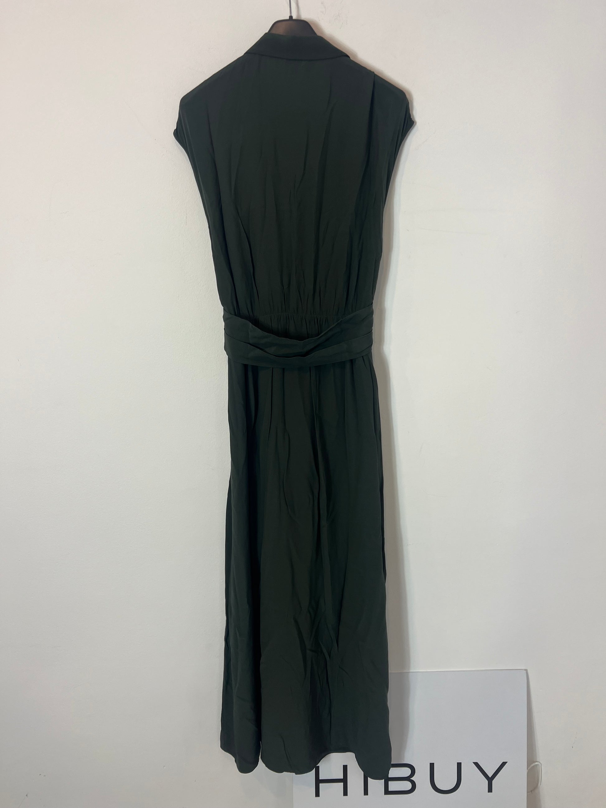 Vestido largo verde abotonado con cinturón de lazada . Largo 133cm