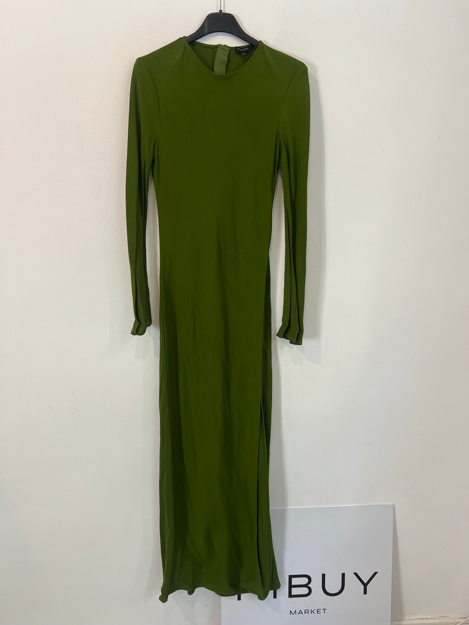 MASSIMO DUTTI. Vestido largo verde T.s