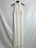 Vestido midi cuello halter blanco. Tiene unas hombreras en la zona del pecho. Largo 142cm. Tiene una apertura en el lado izquierdo