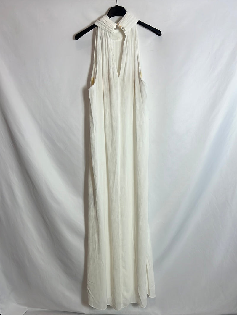 MASSIMO DUTTI. Vestido midi cuello halter blanco. T 34