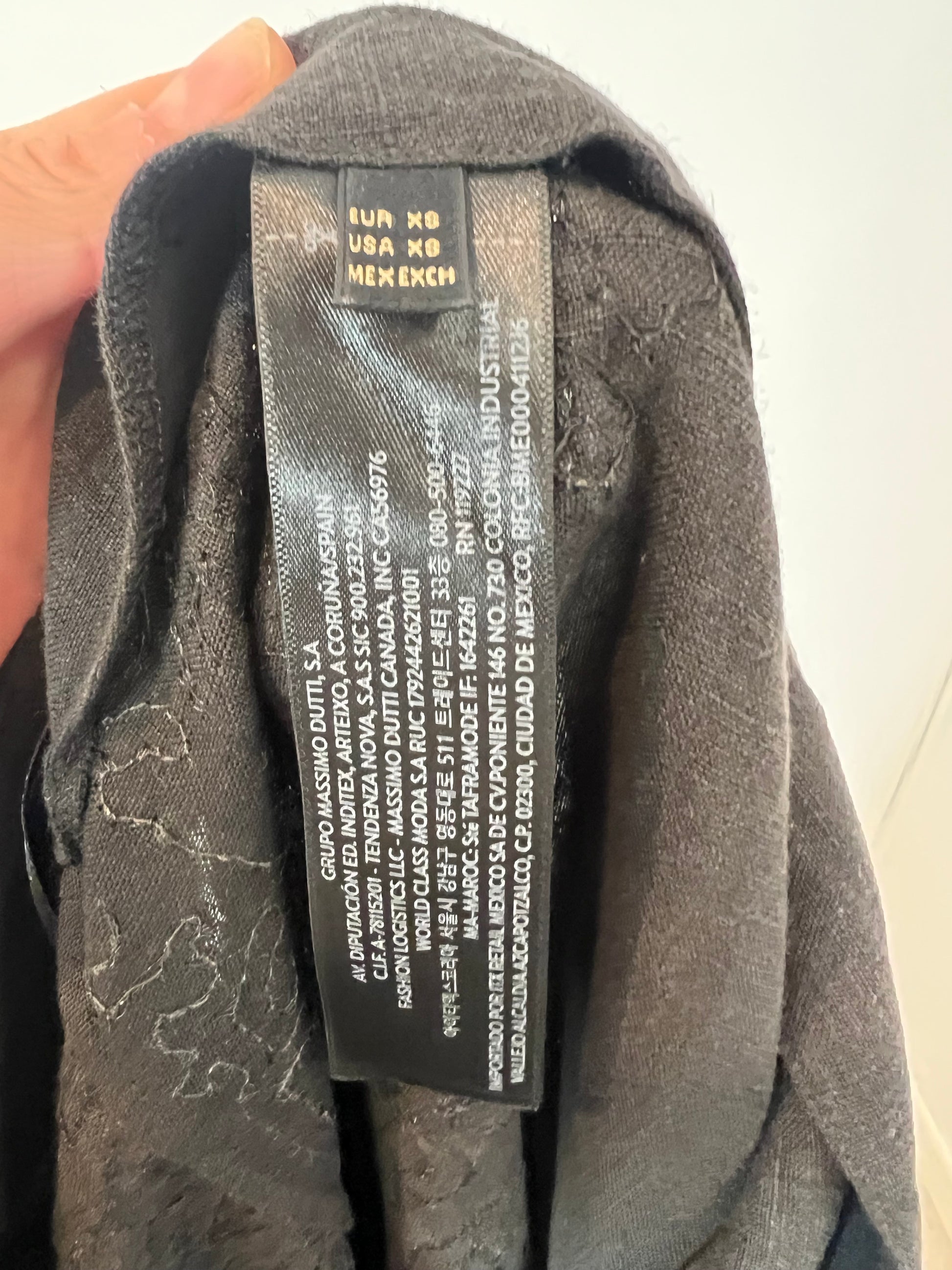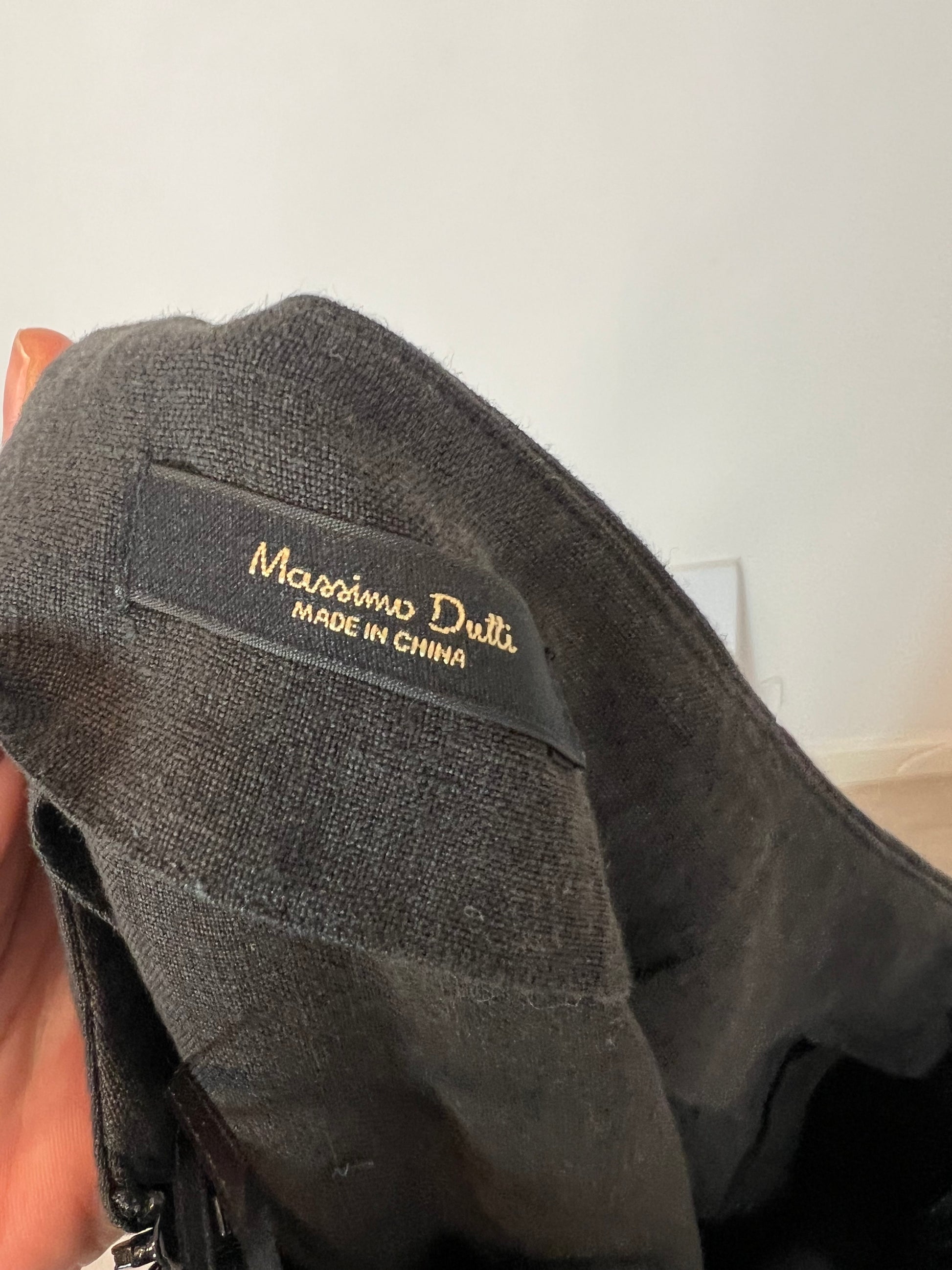 MASSIO DUTTI. Falda midi lino negra pedrería T.xs