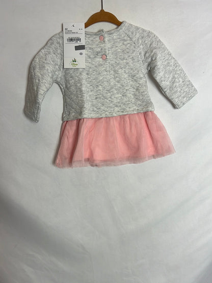 MDISNEY. Vestido doble textura dibujo. T 2-3 meses