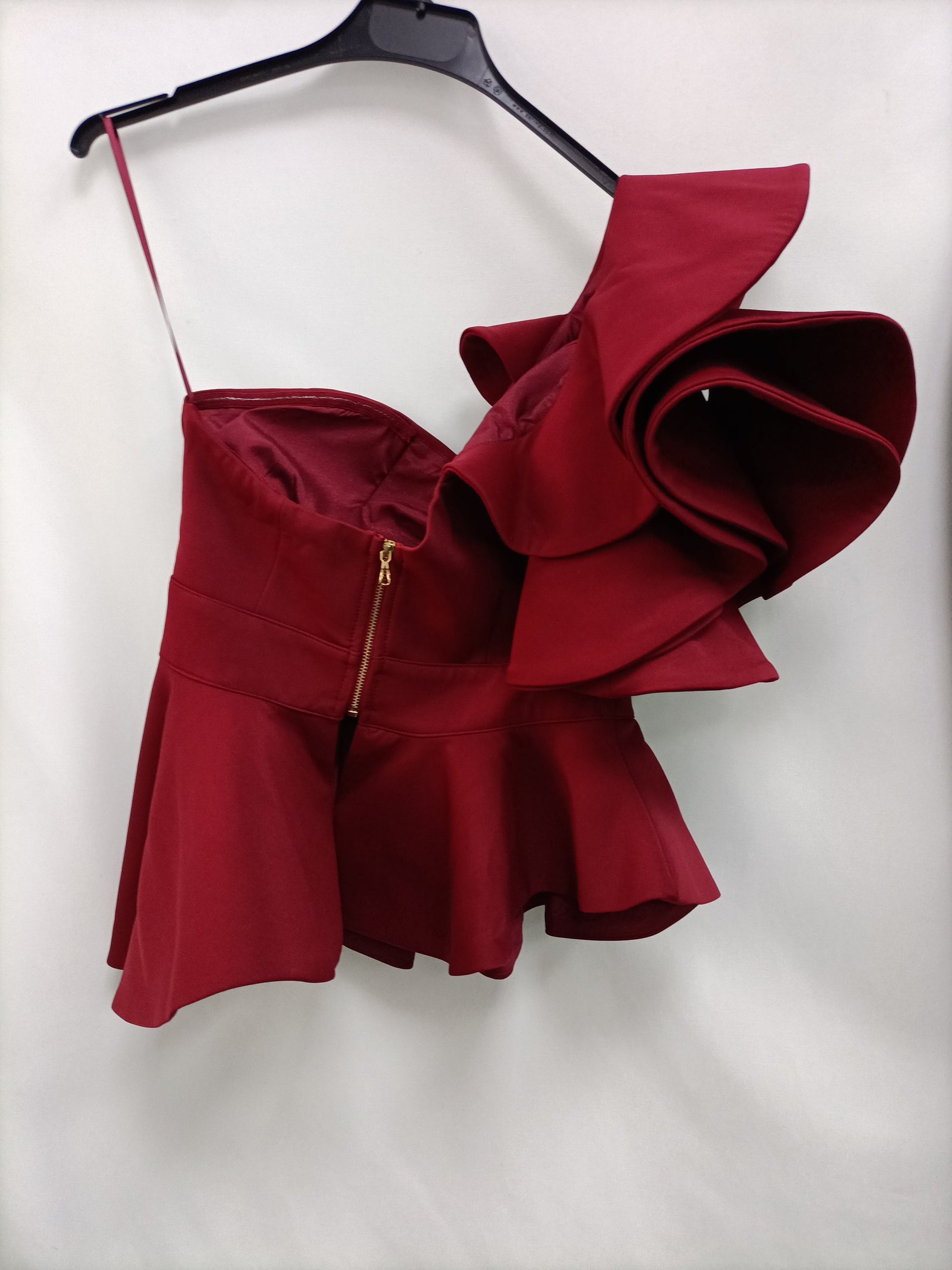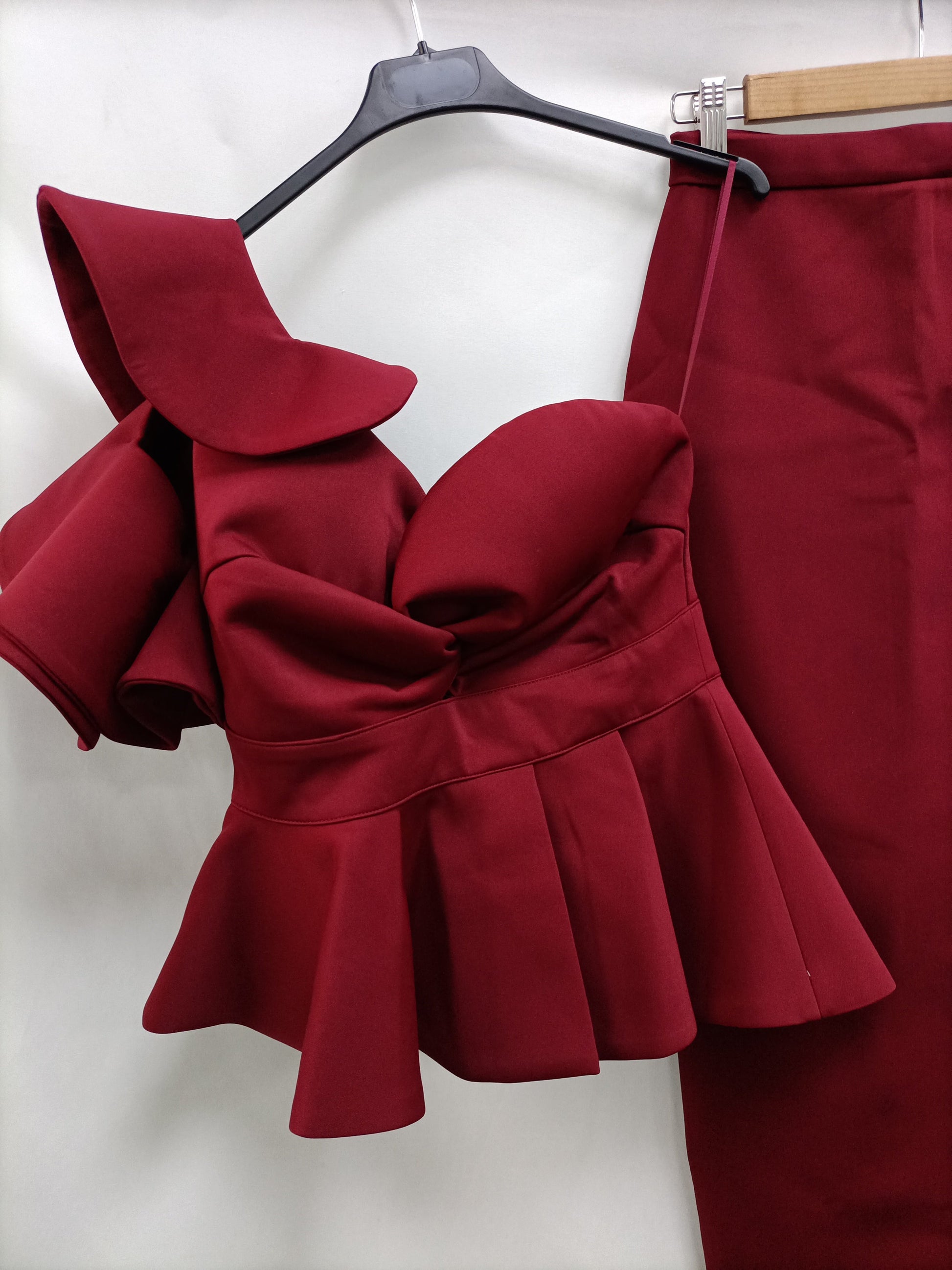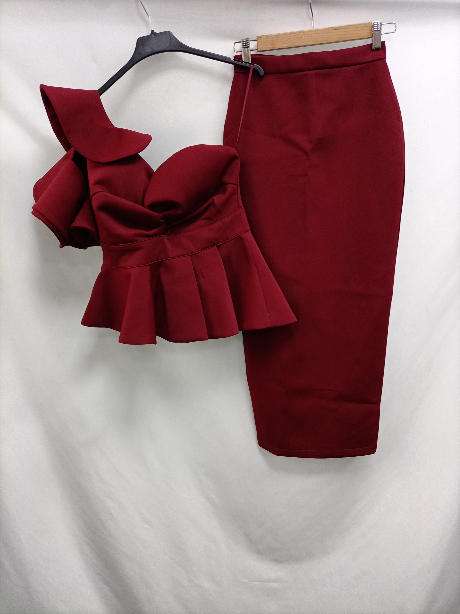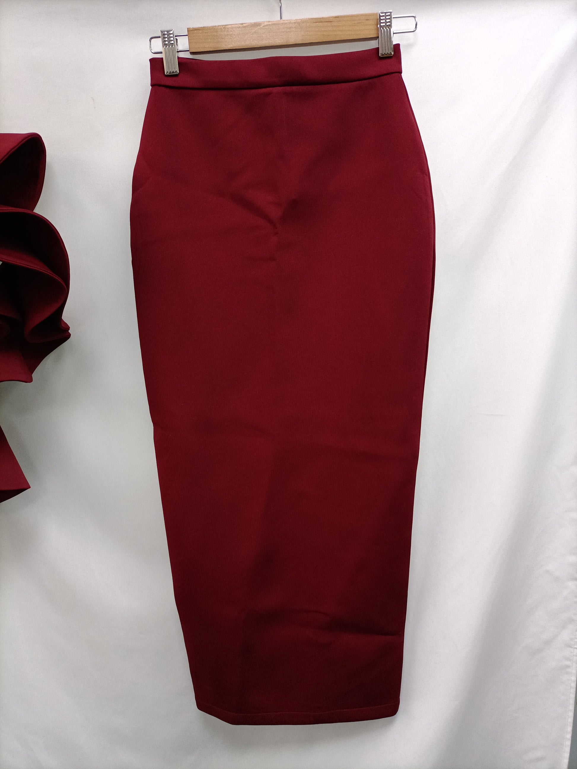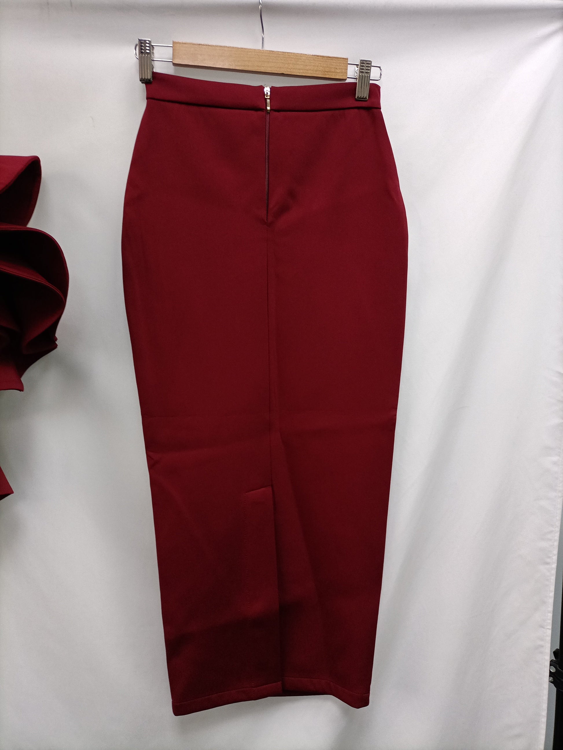 total look burdeos de falda y top asimétrico con volantes. de sisa a sisa cm largo cm