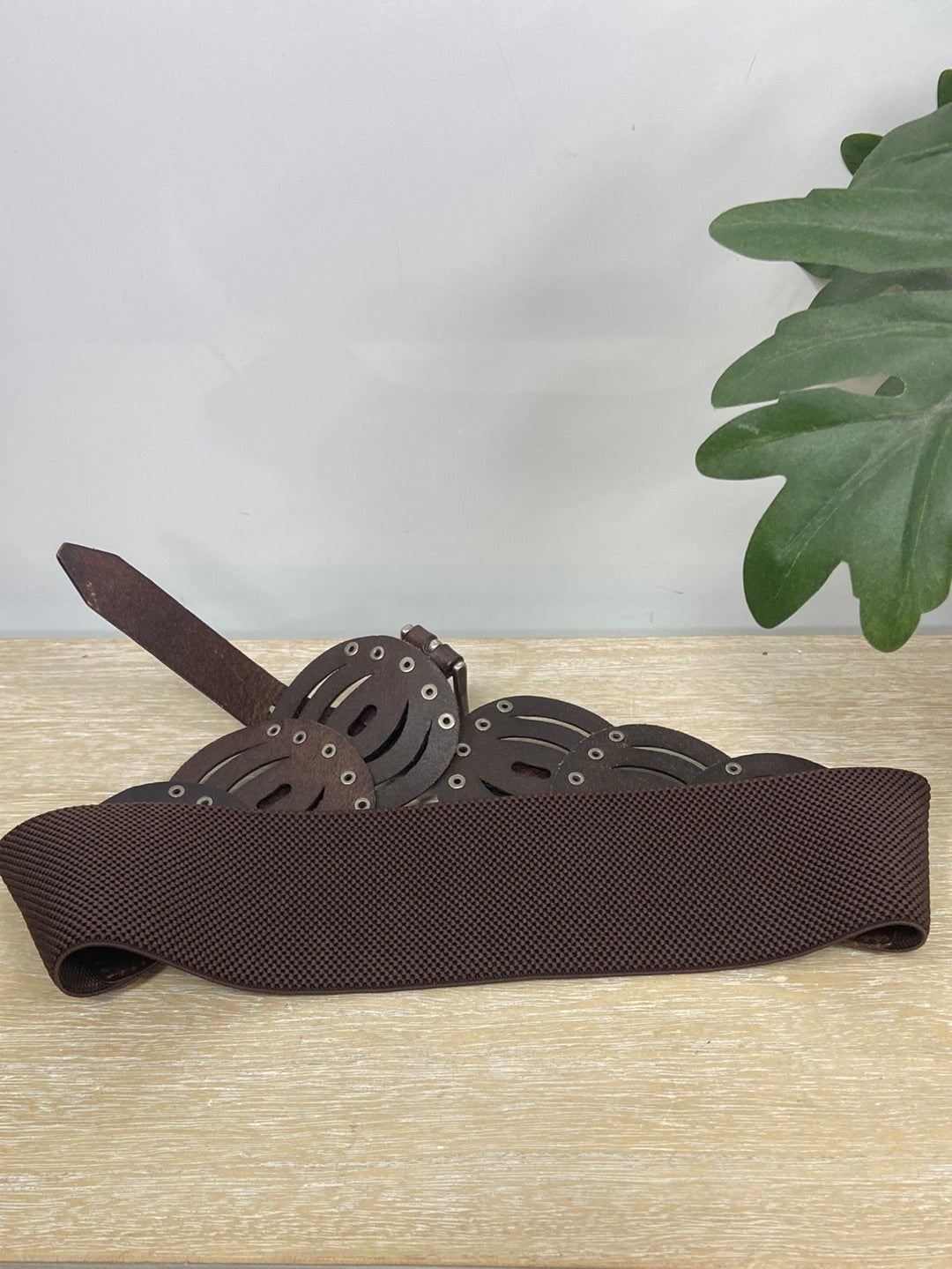 Cinturón elástico marrón estilo fajín.