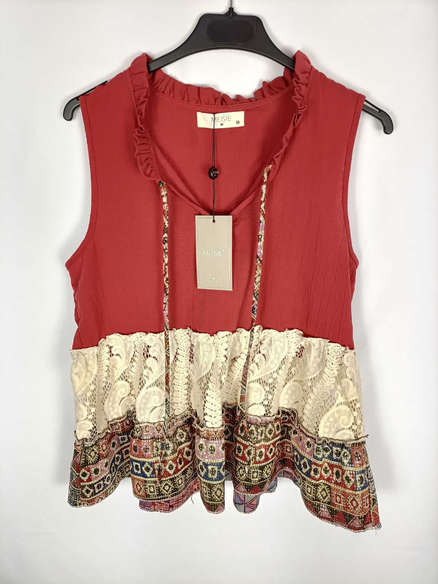 Meisie. NUEVO CON ETIQUETA. Top fluido con varios tejido y estampados. No elástica. De sisa a sisa 47 cm largo 64 cm