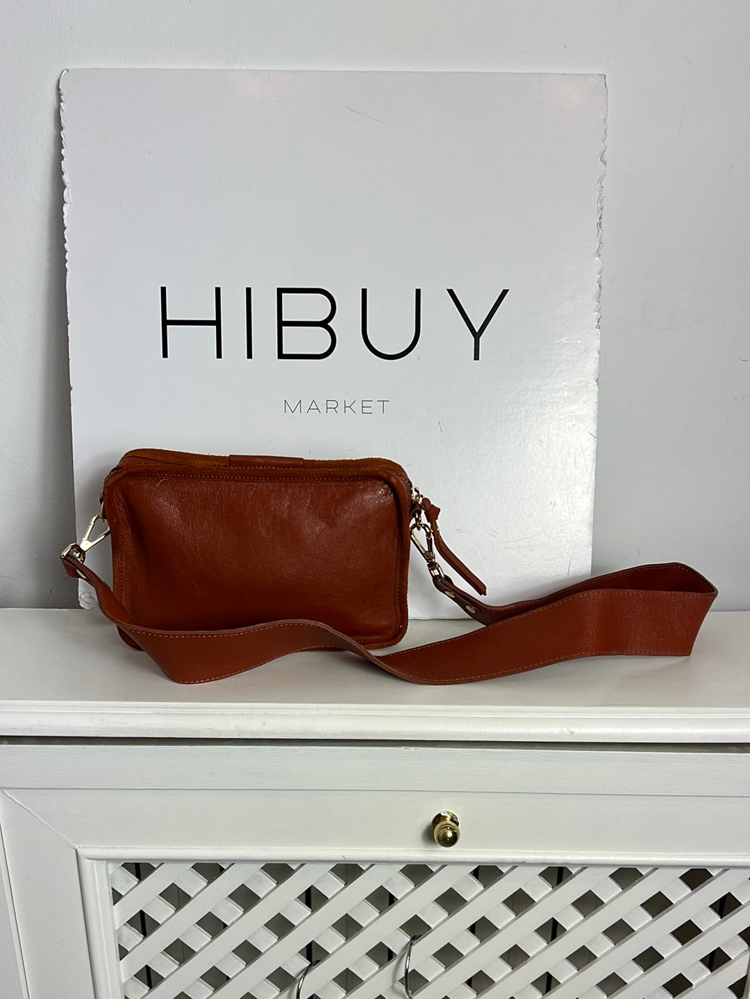 NUEVO SIN USO. Bolso marrón doble textura piel . Largo 22cm, alto 15cm