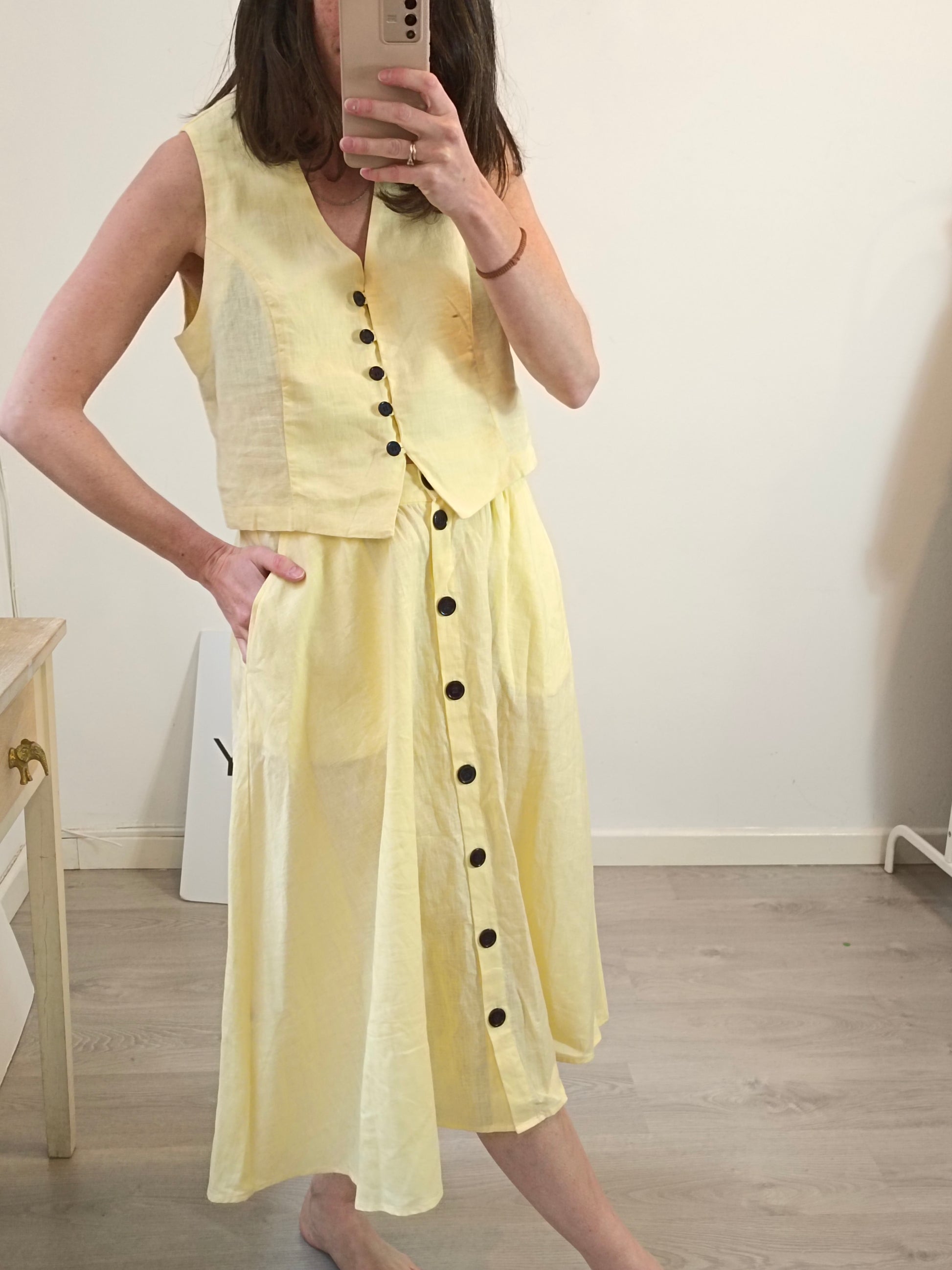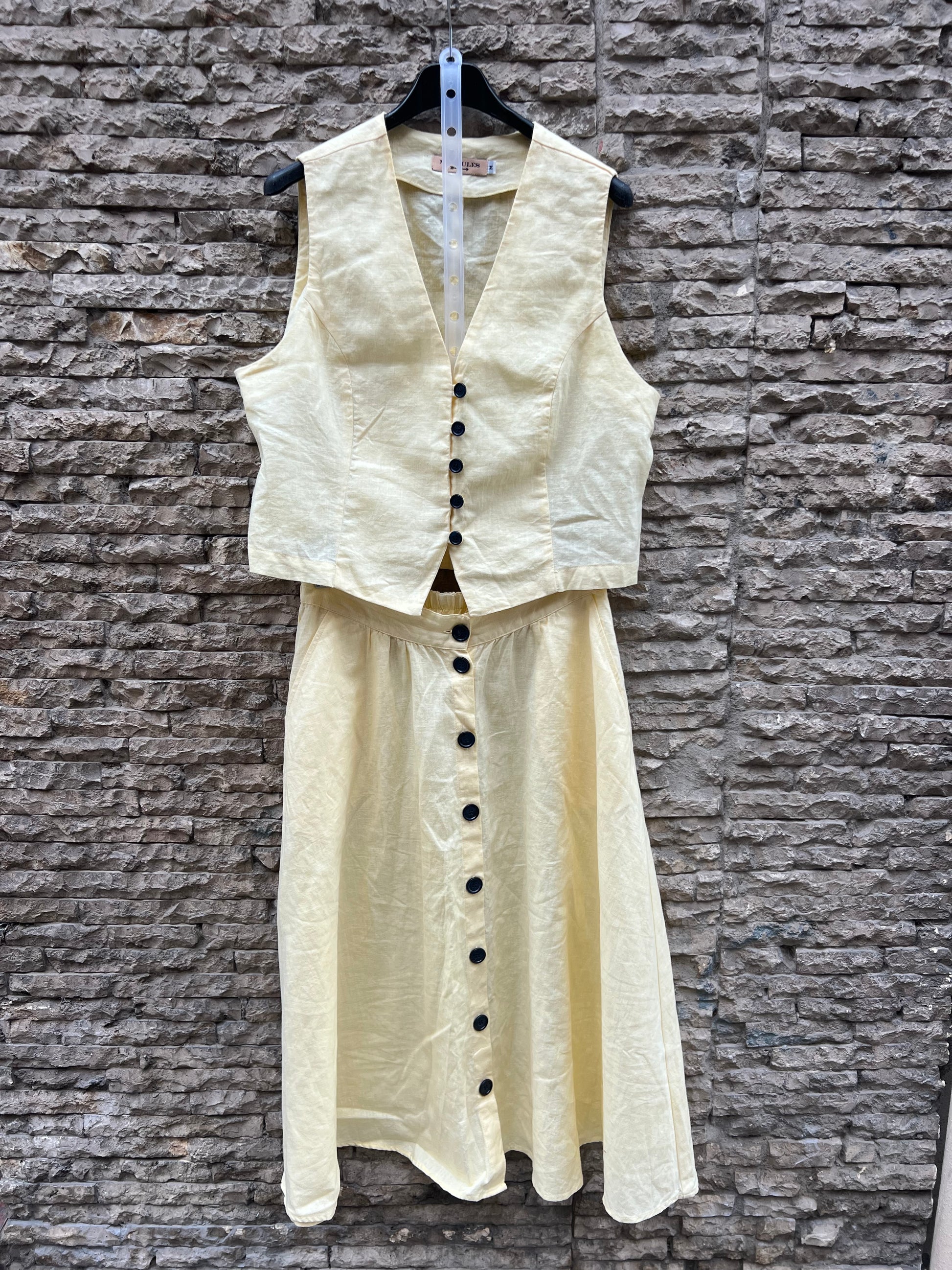 MERCULES. Conjunto lino top y falda midi. T S/M