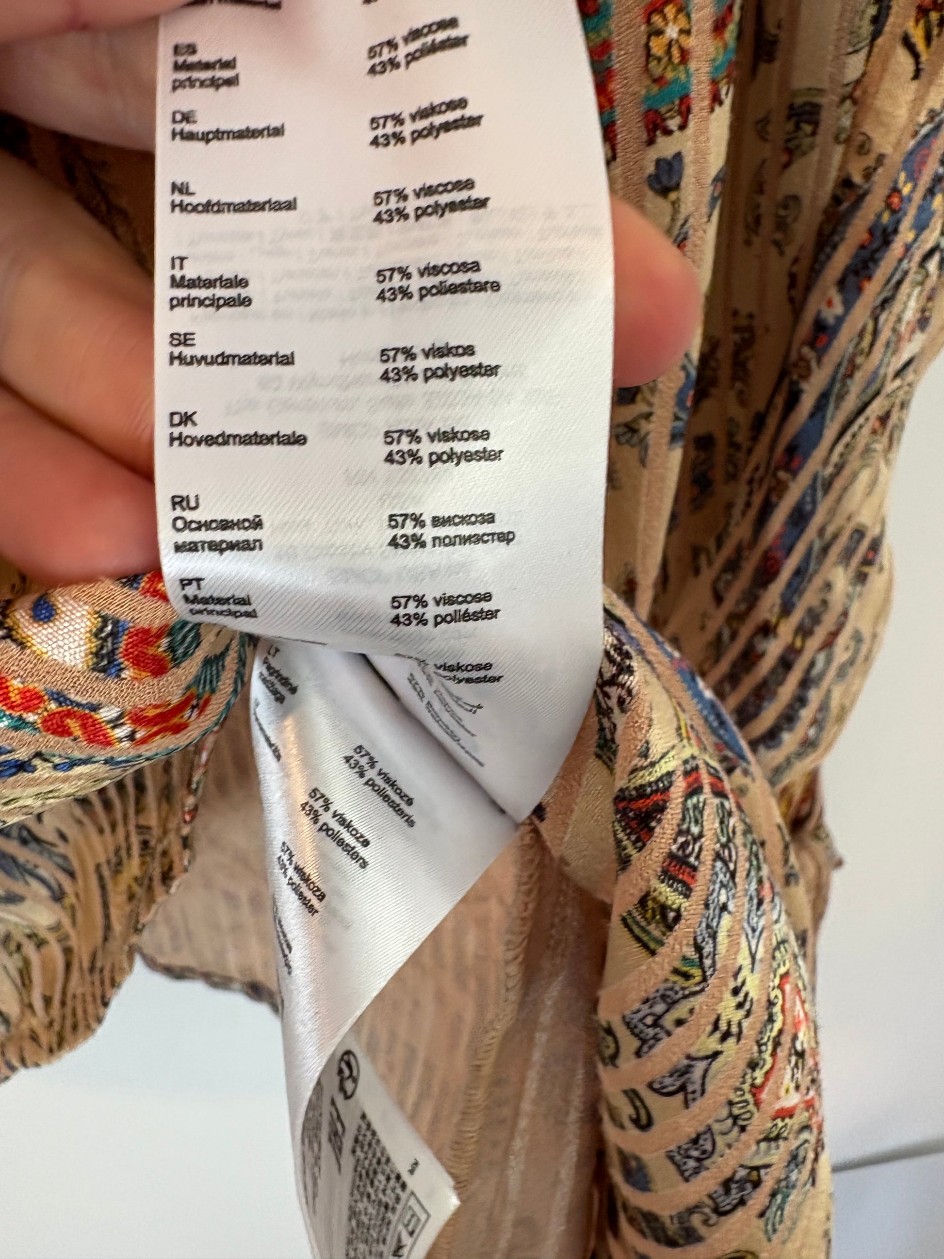 No elástico. Blusa beige estampada largo 70 cm