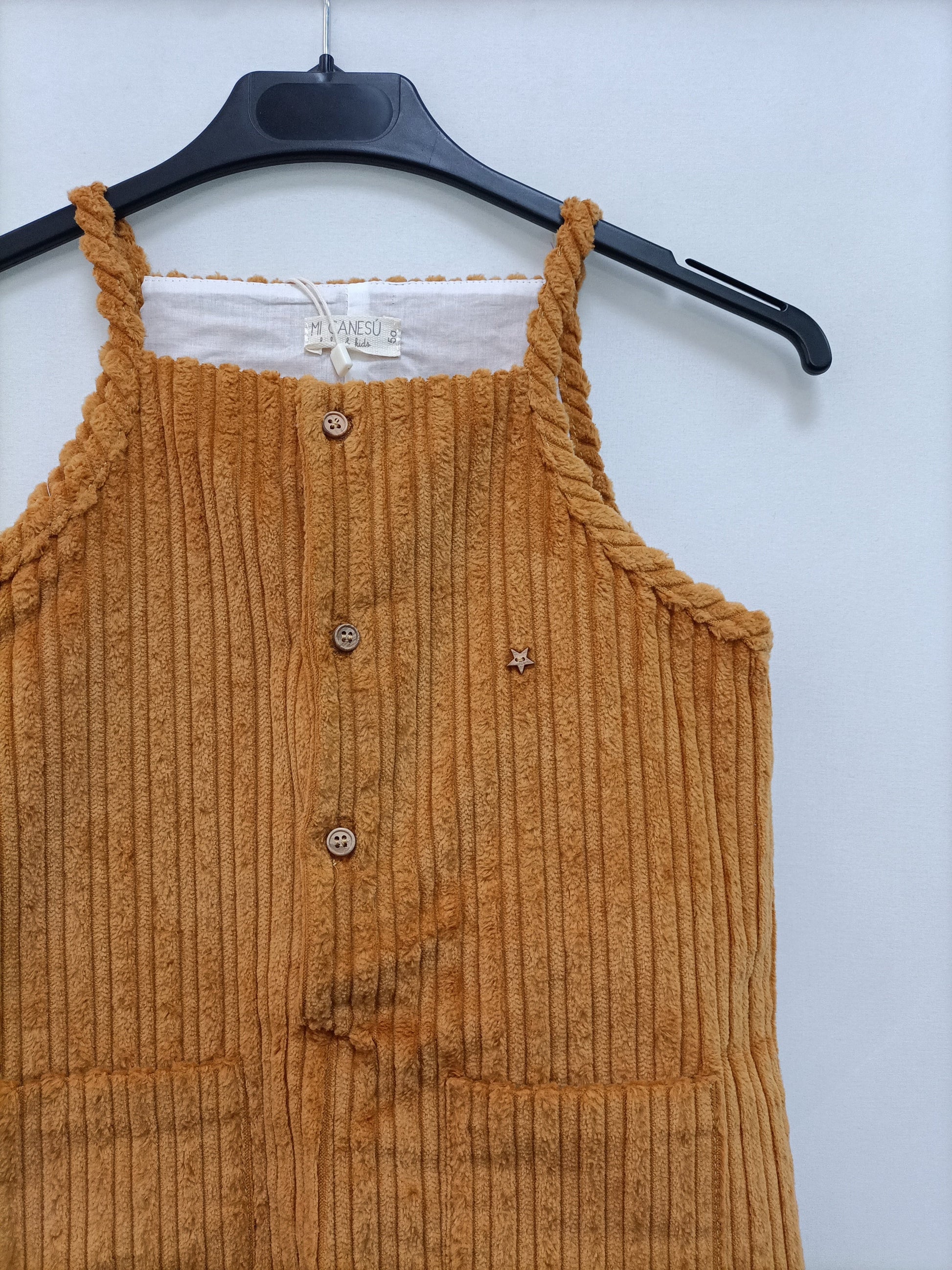 NUEVO CON ETEQUETA. peto largo de pana suave color mostaza. Botones en la parte de arriba.