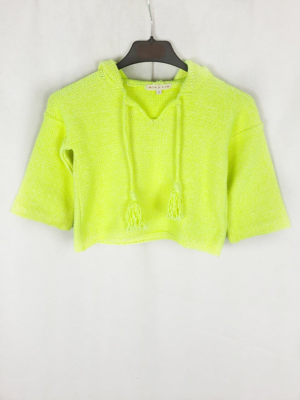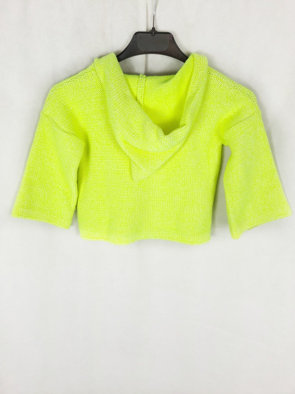 Mia y lia. Jersey amarillo fluor con capuchas. Elástico. Largo 36 cm. 70% algodón 30% acrilico