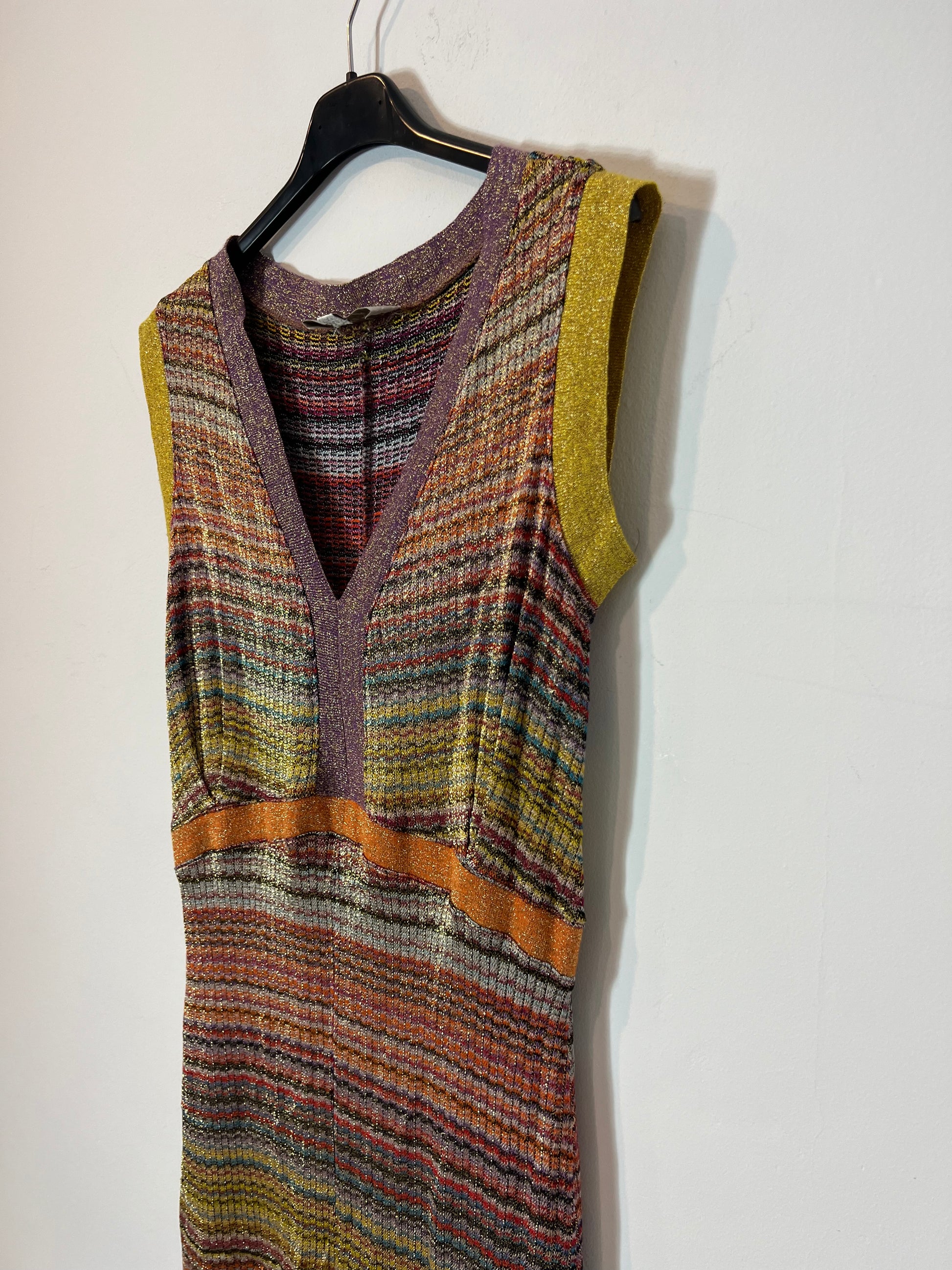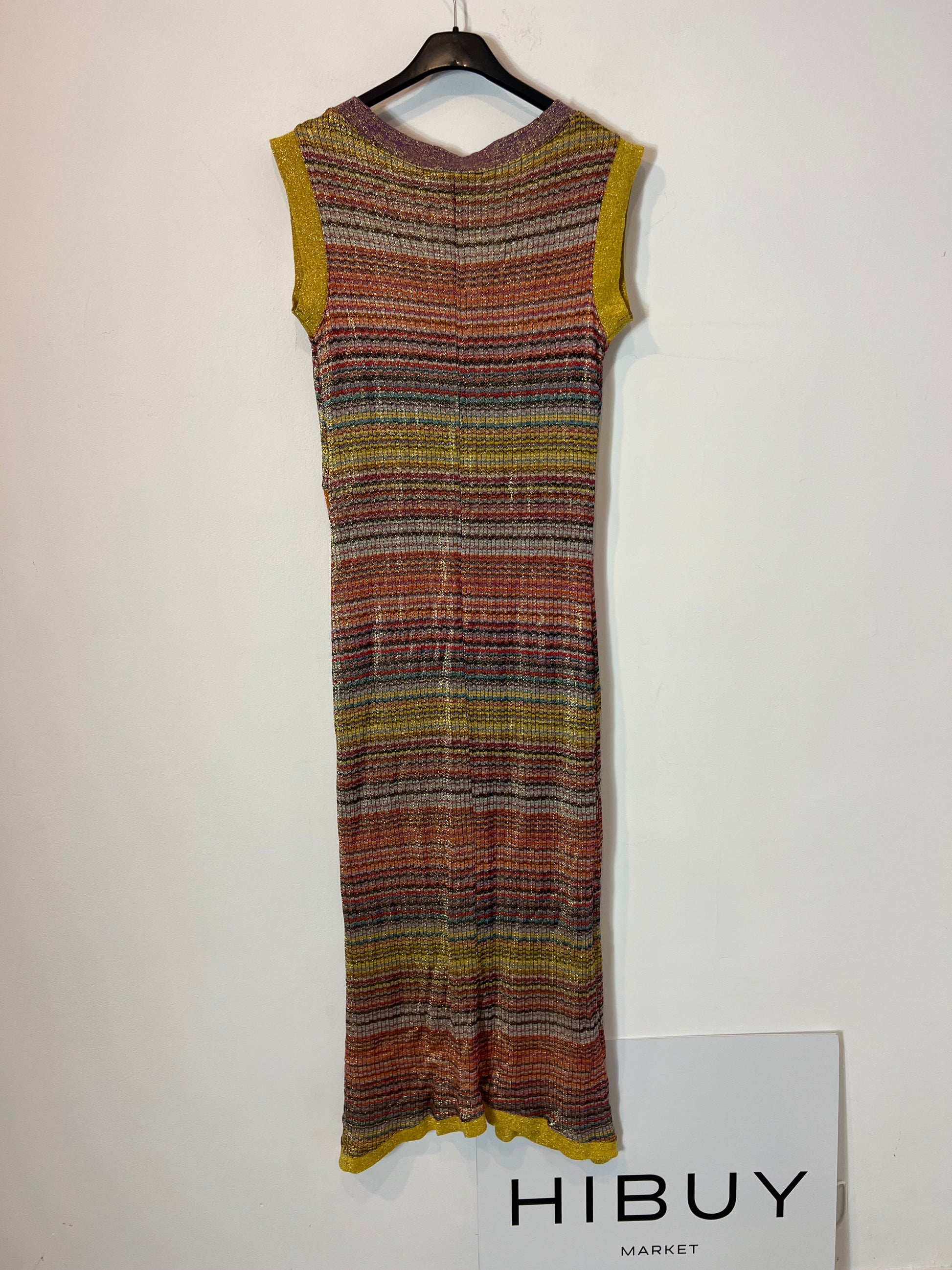 Vestido midi de punto multicolor con detalle de hilos metálicos. largo 127cm , de sisa a sisa 42cm