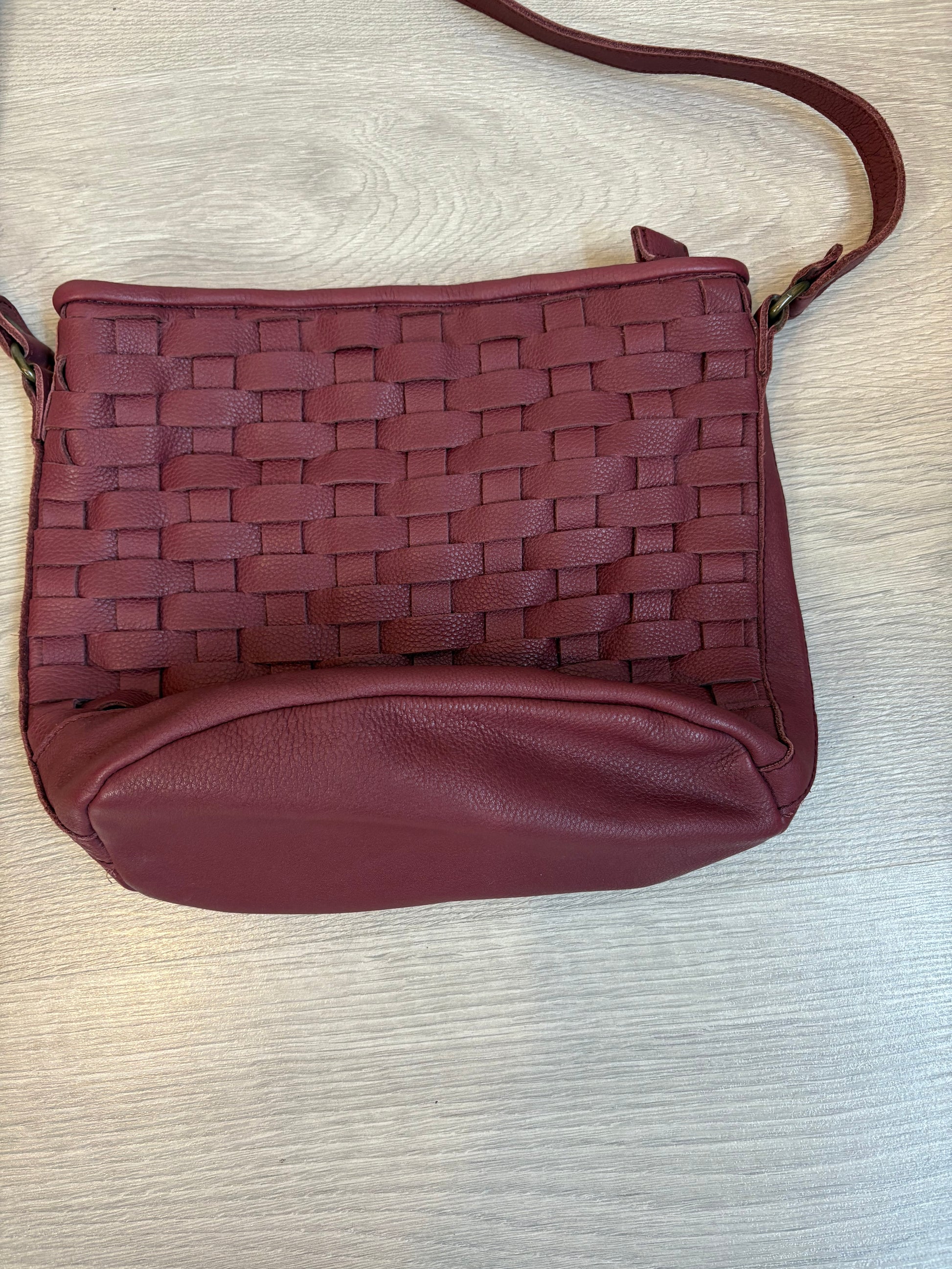 MICUIR. Bolso piel trenzada burdeos