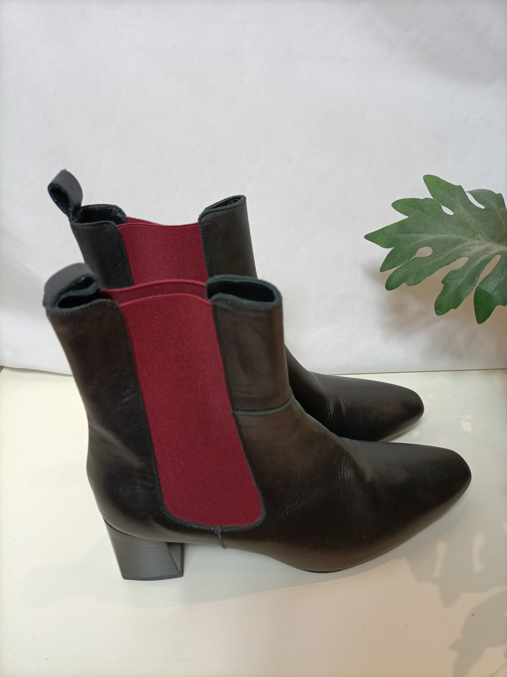 SIN ESTRENAR. botines de piel negros con goma burdeos