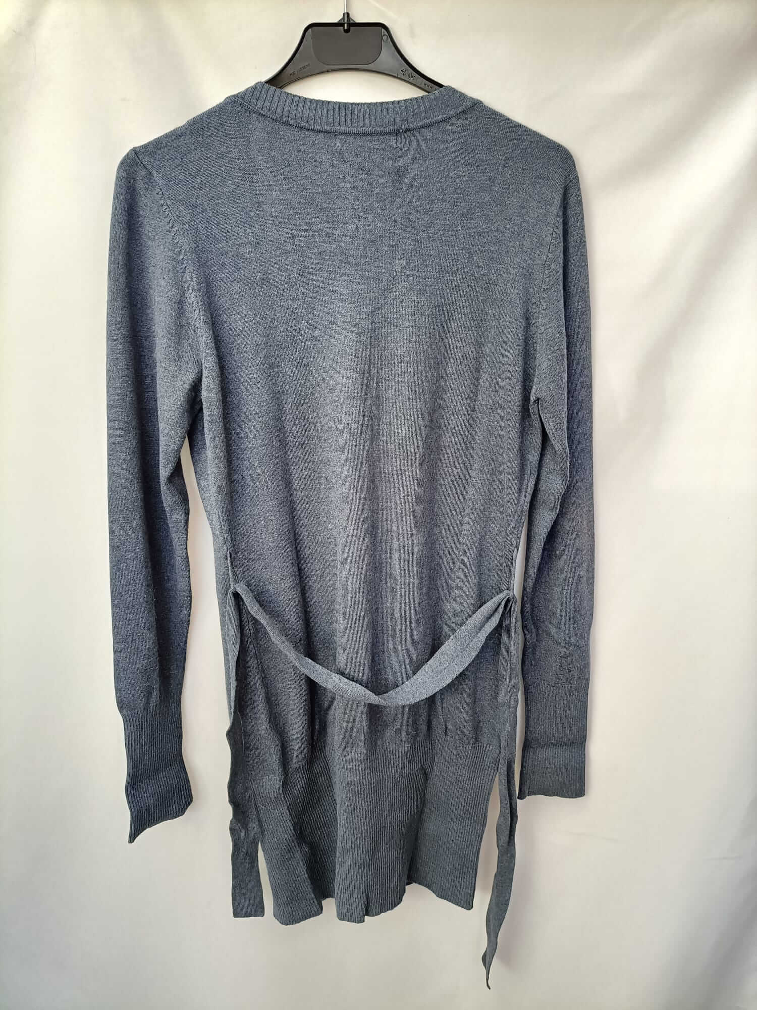 Milleniim. Tu (s/m). Rebeca azulona jaspeada larga con botones y cinturón de lazada. Largo 80 cm