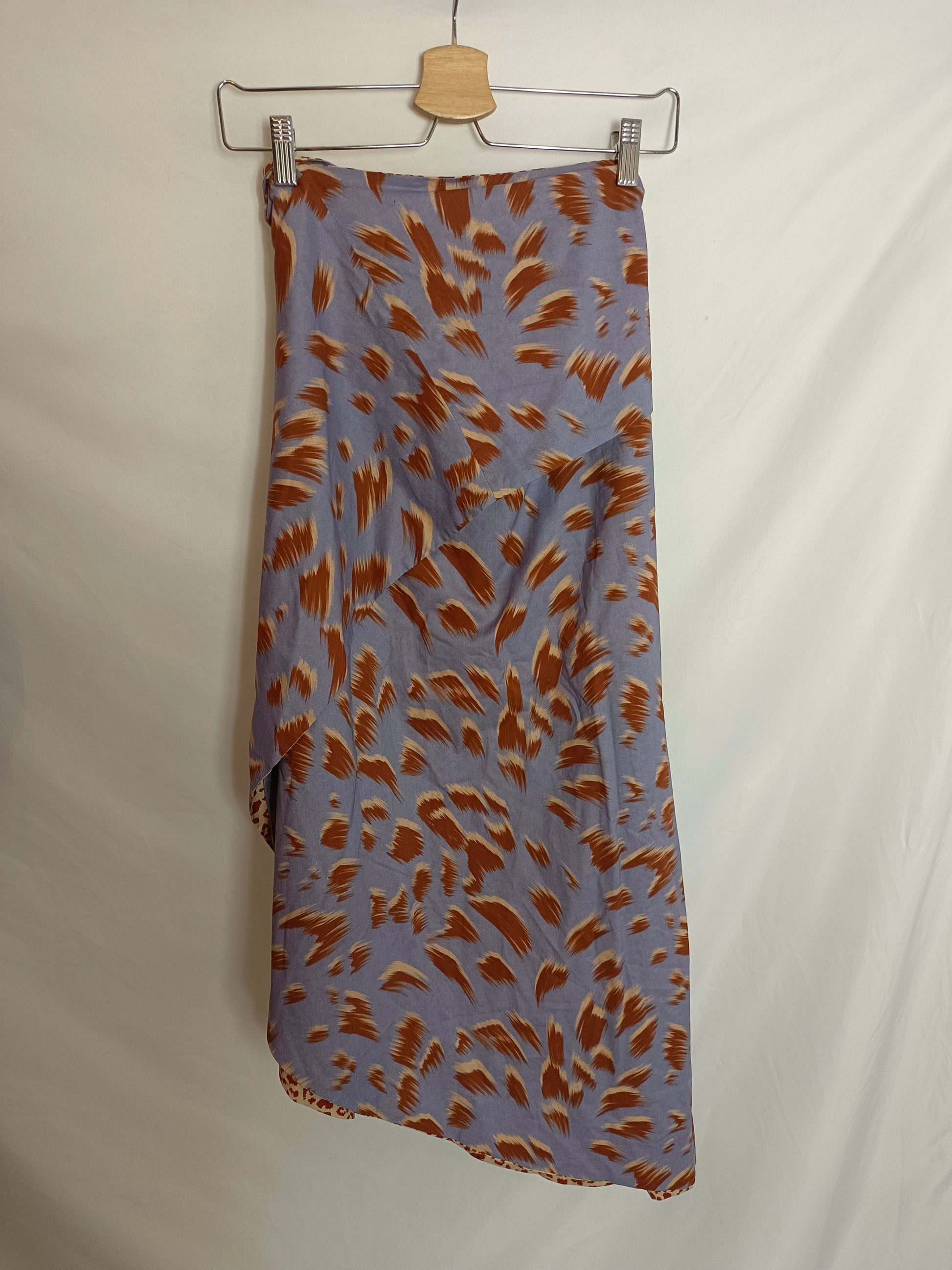 NUEVO CON ETIQUETA. total look estampado de falda reservable estilo pareo y top con espalda al aire.