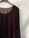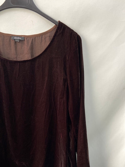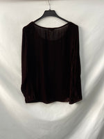 Blusa marrón/marrón de terciopelo elástica. Total look con pantalones.