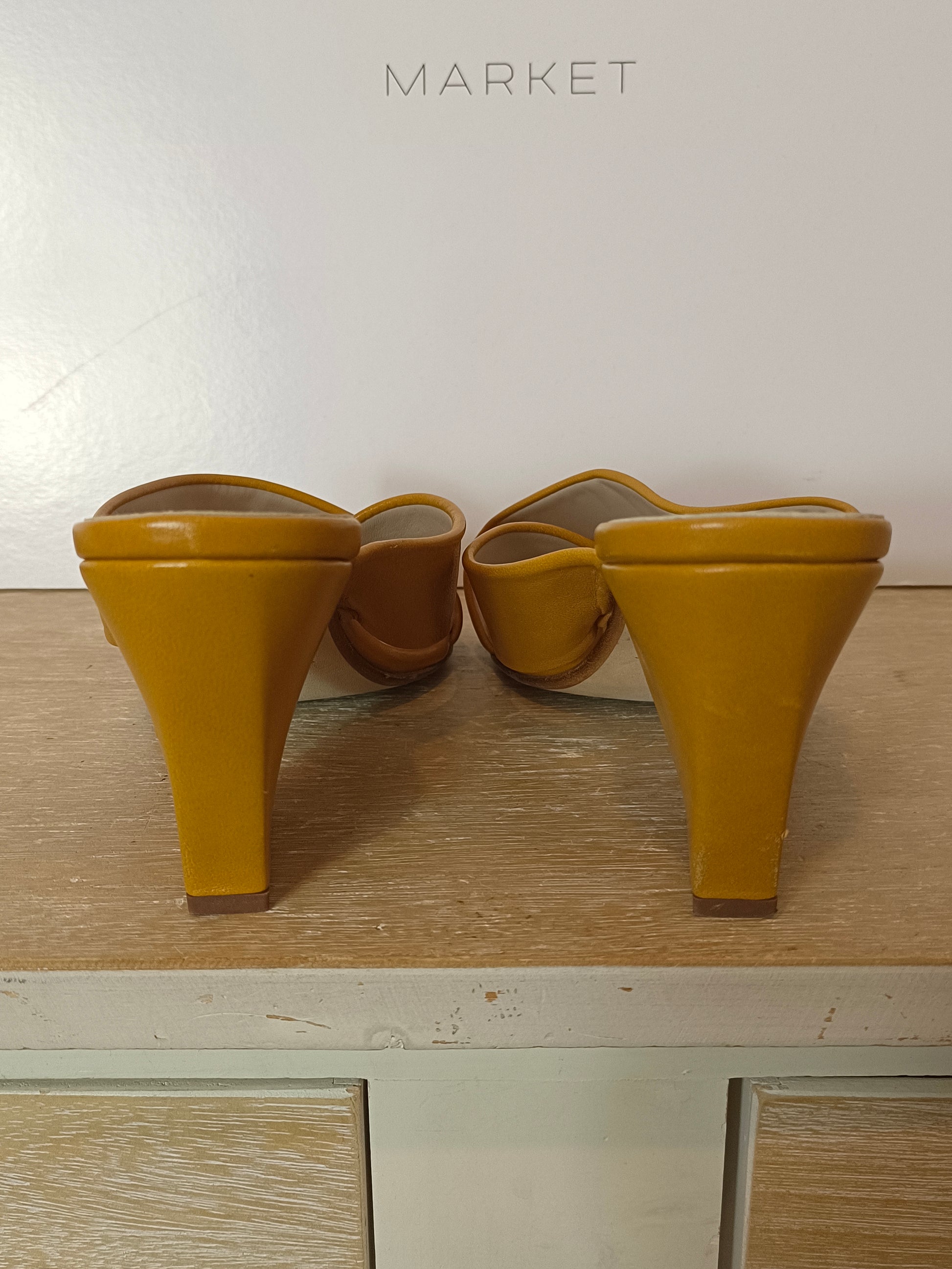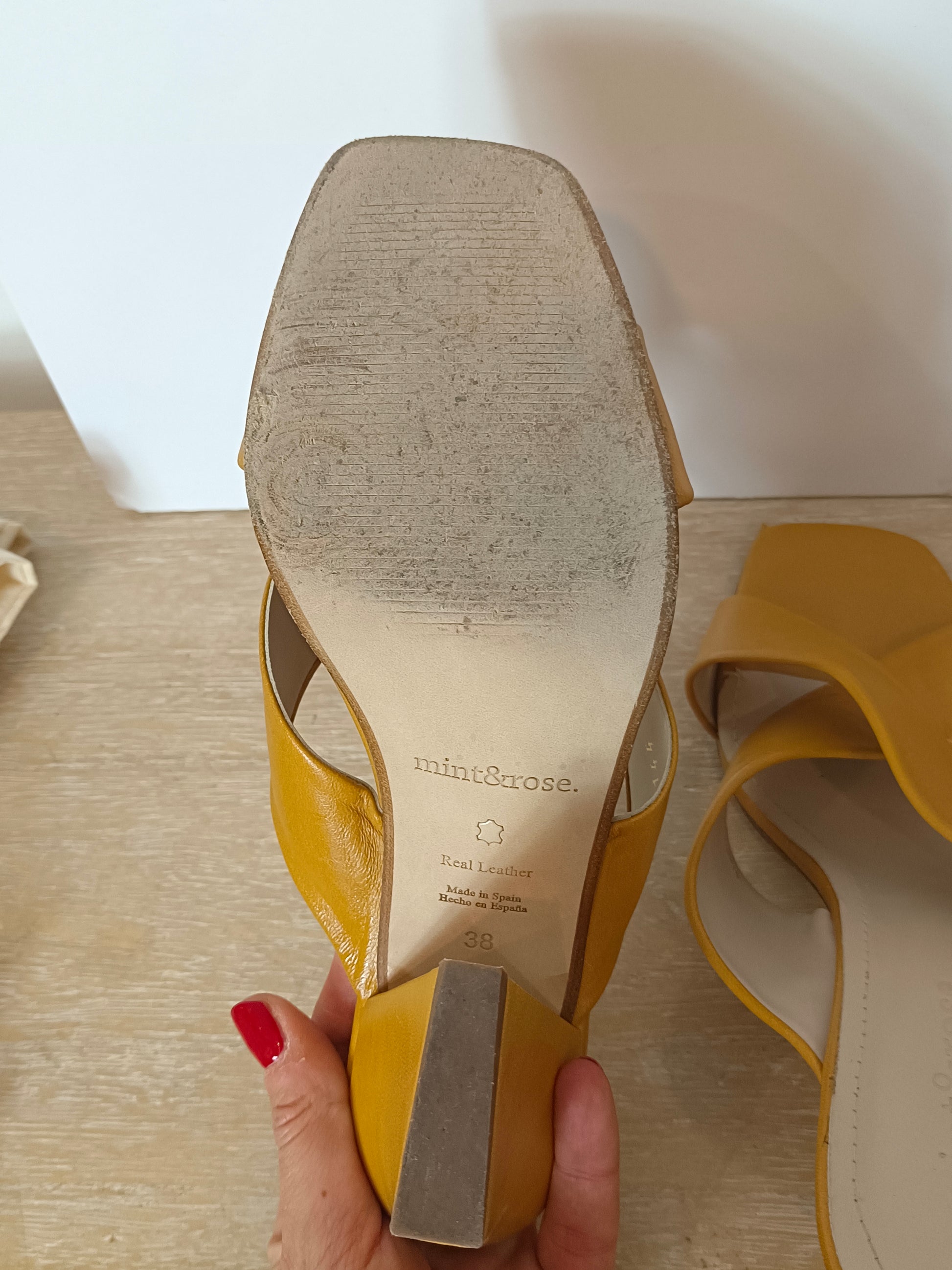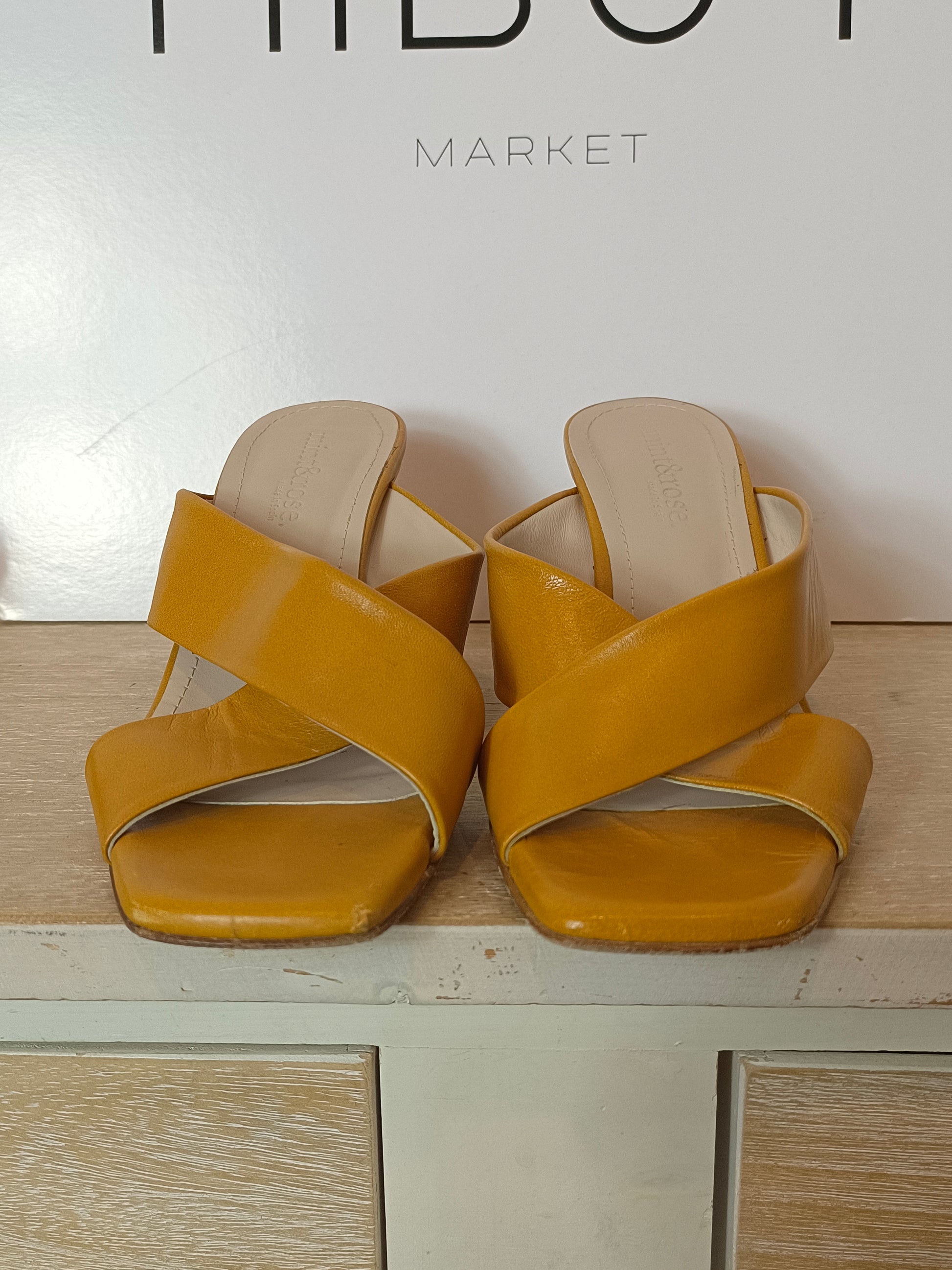 MINT & ROSE. Sandalia piel tira cruzada mostaza. T 38