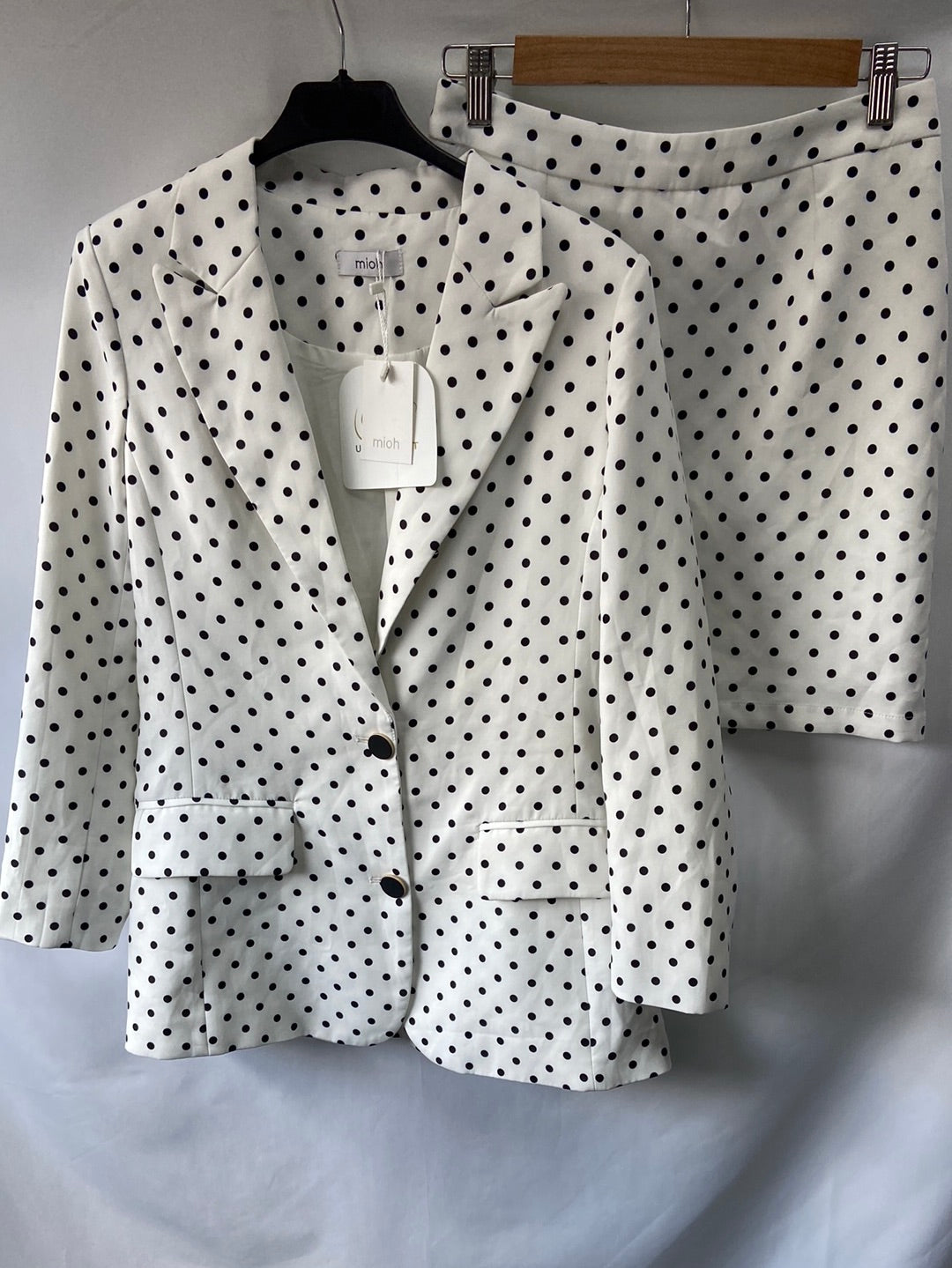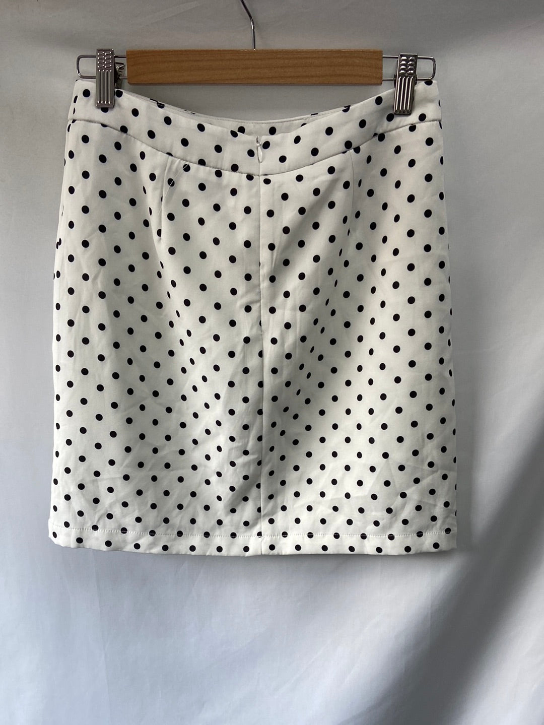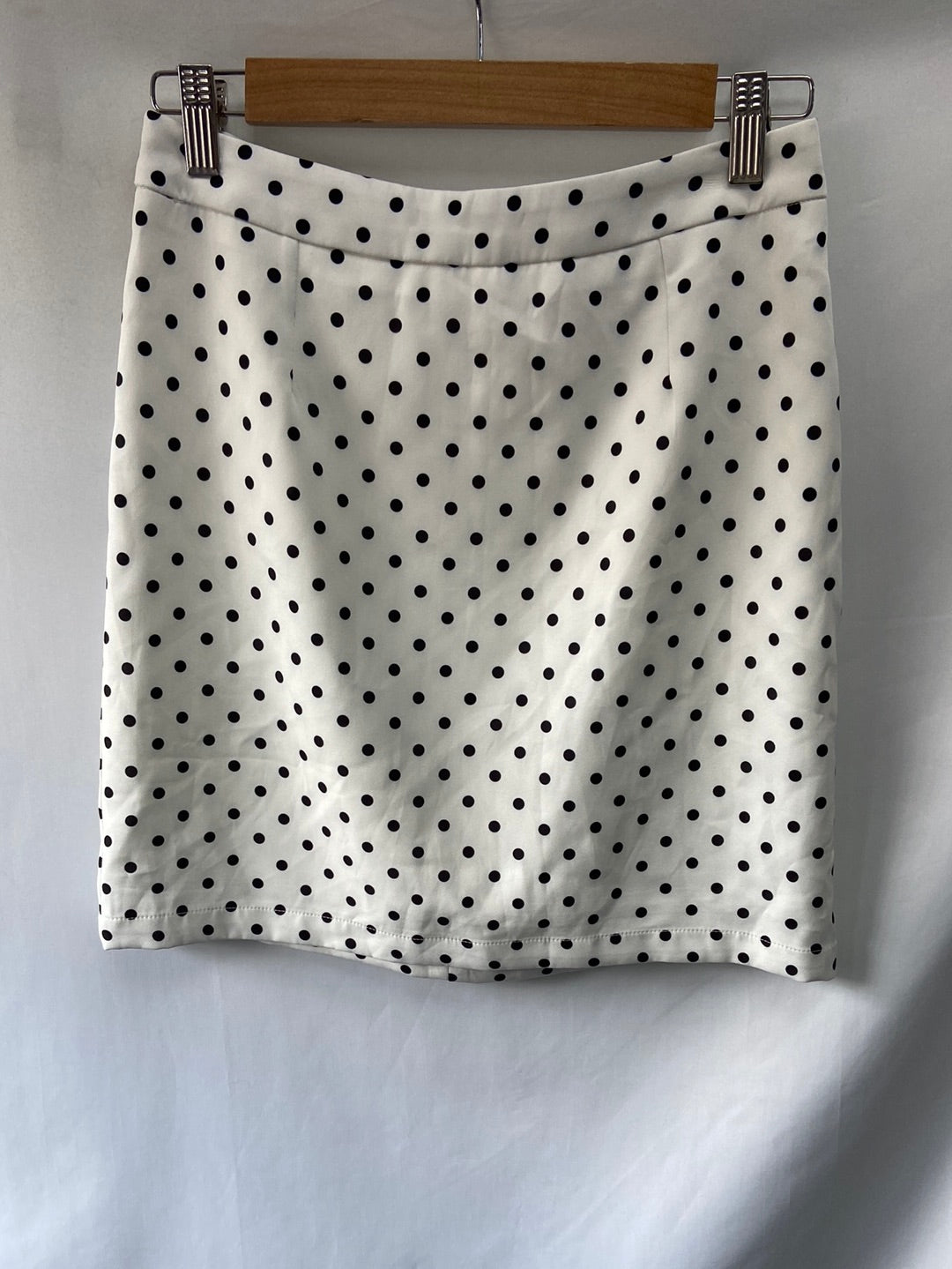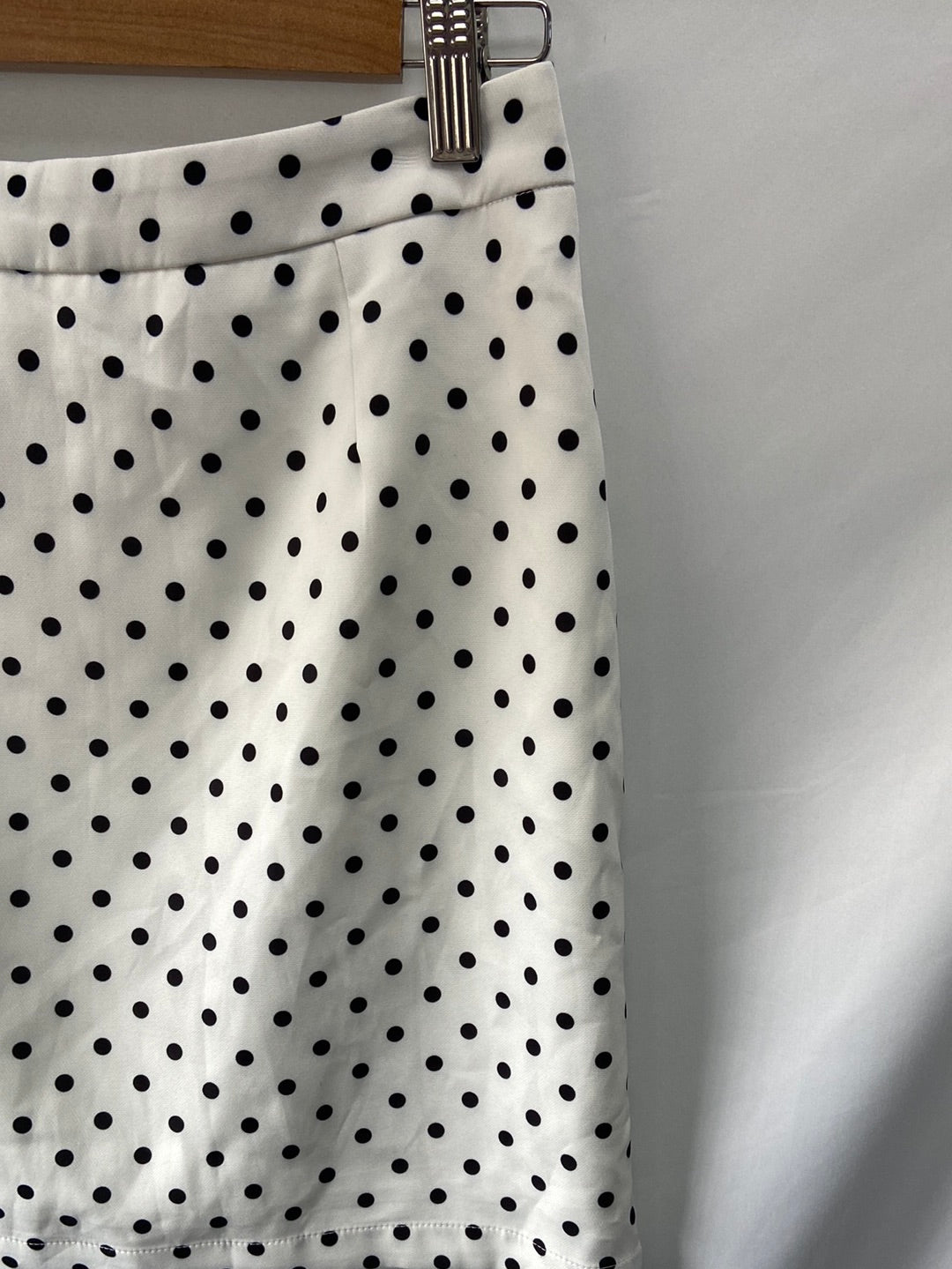 Falda recta elástica semielastica blancos con lunares negros. Cremallera por detrás. Cintura 36 cm largo 44 cm