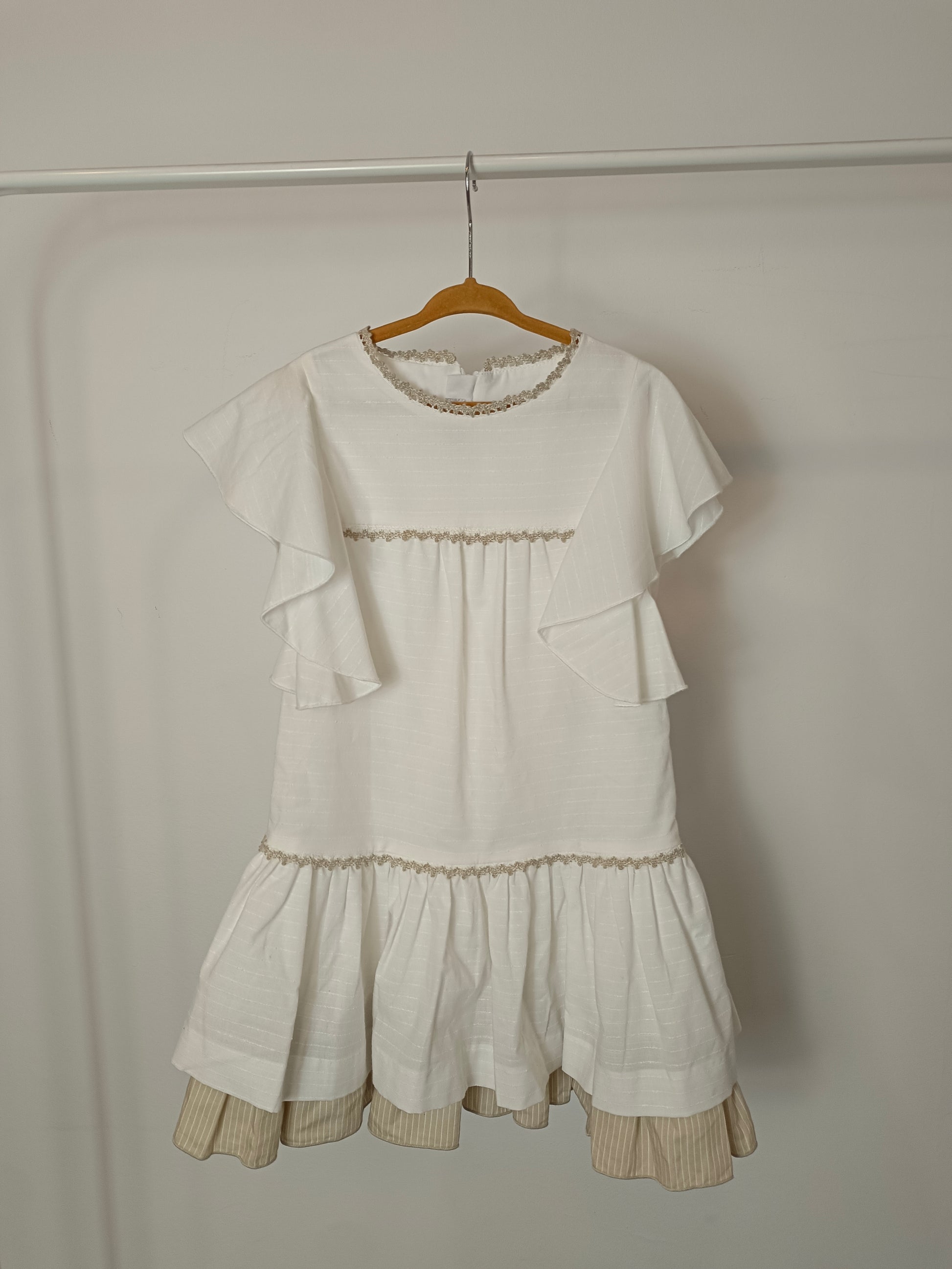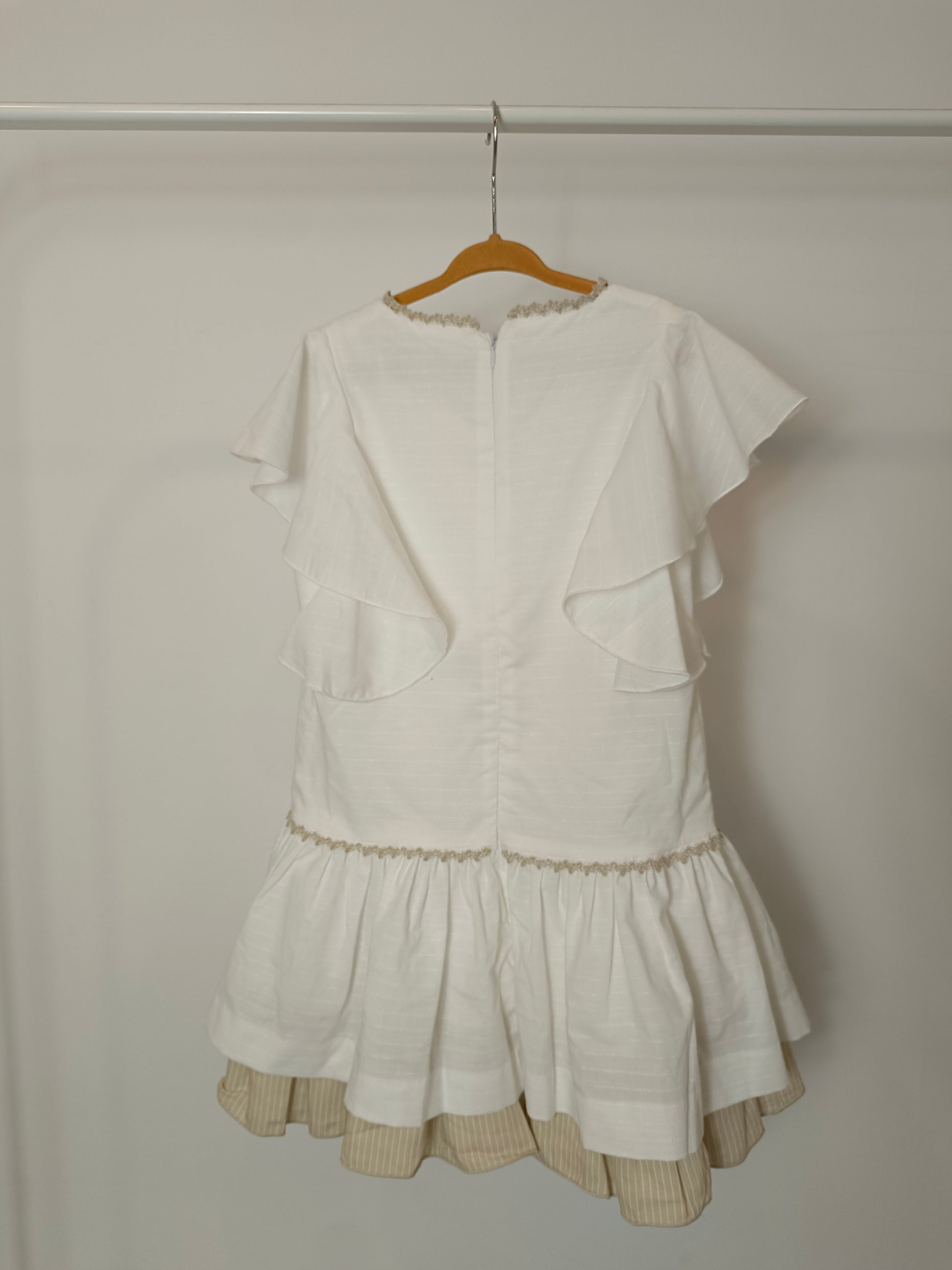 MIRANDA ES COSA DEN NIÑOS. Vestido blanco detalle beige T.8 años