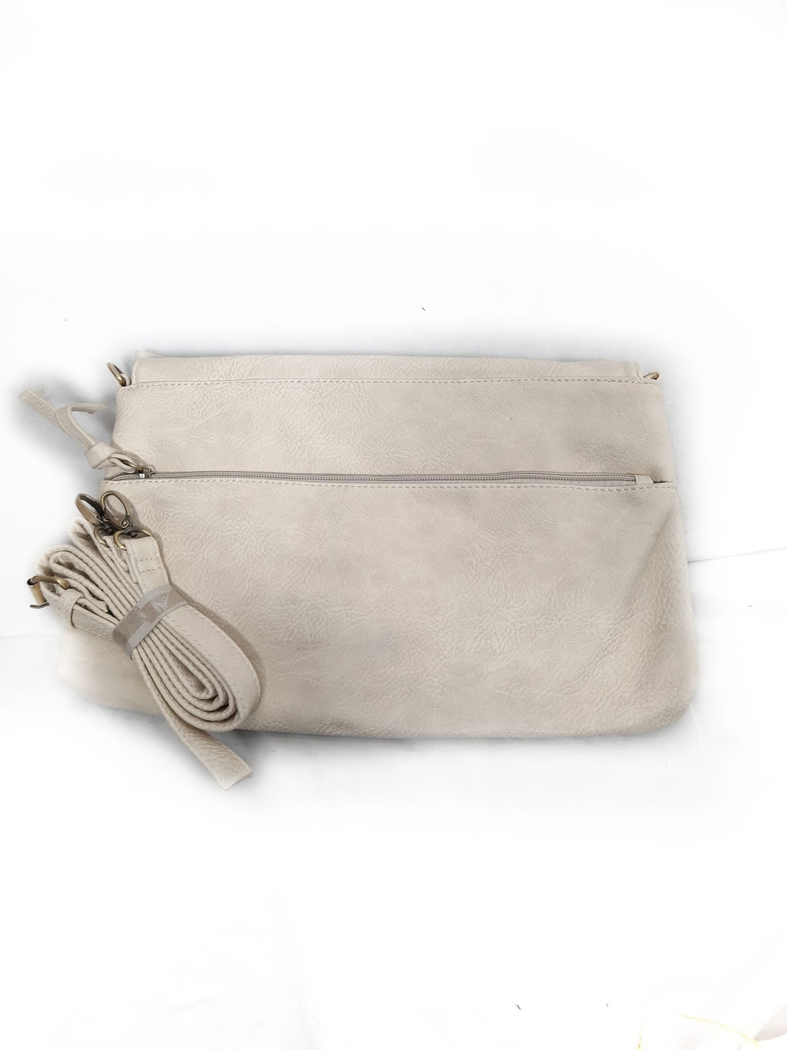 Bolso beige de polipiel. Asa extraíble. Largo 35 alto 24 cm. Tara piel algo sucia
