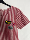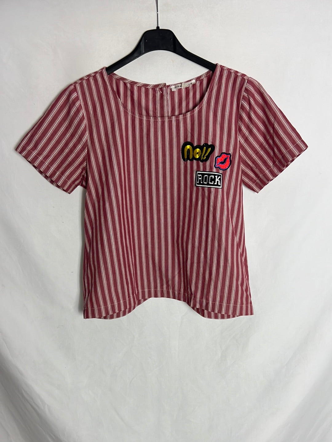 MISS BLUE. Top rayas burdeos parches. T M (S)