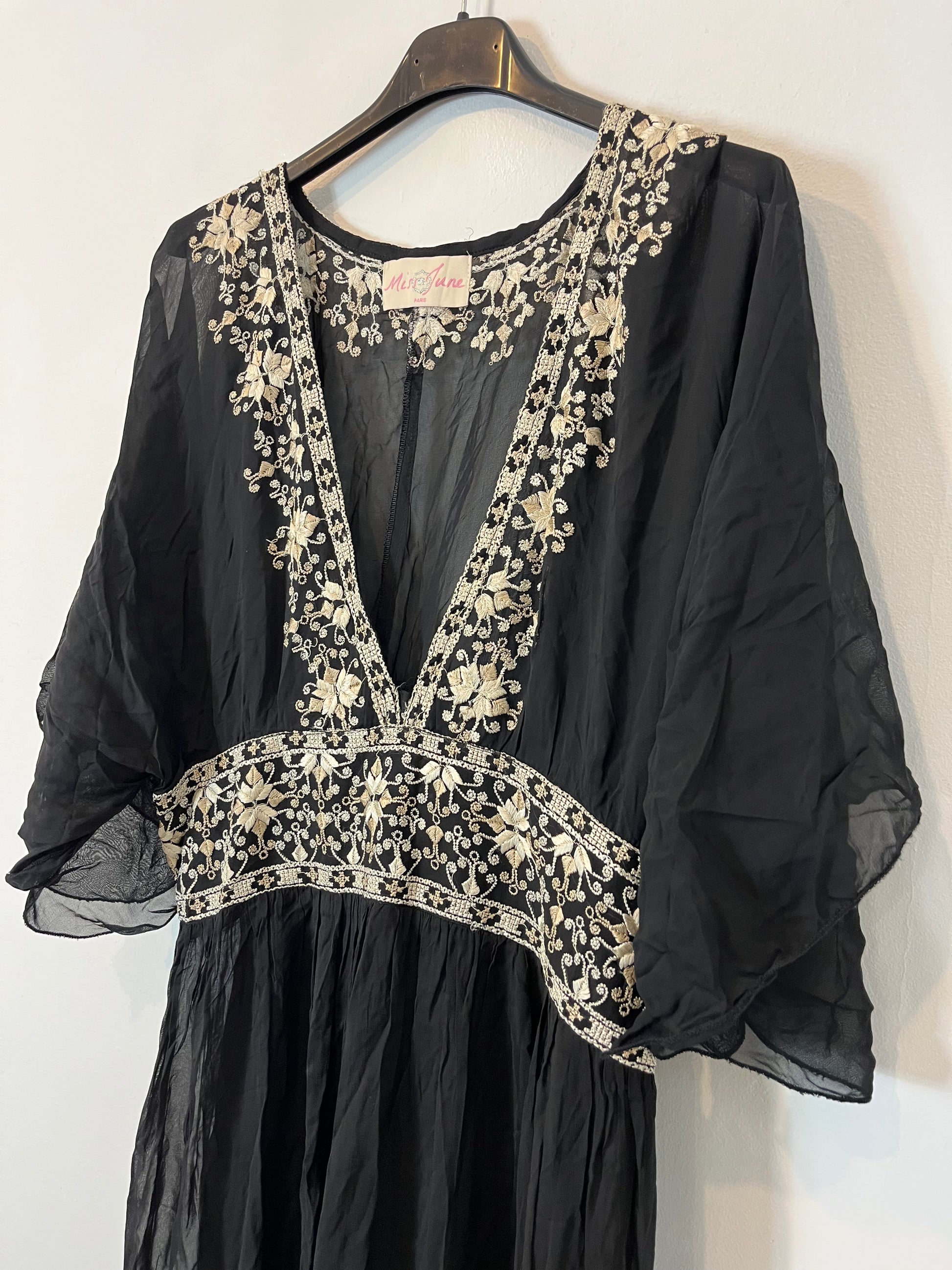 MISS JUNE. Vestido negro detalles bordados. T.S