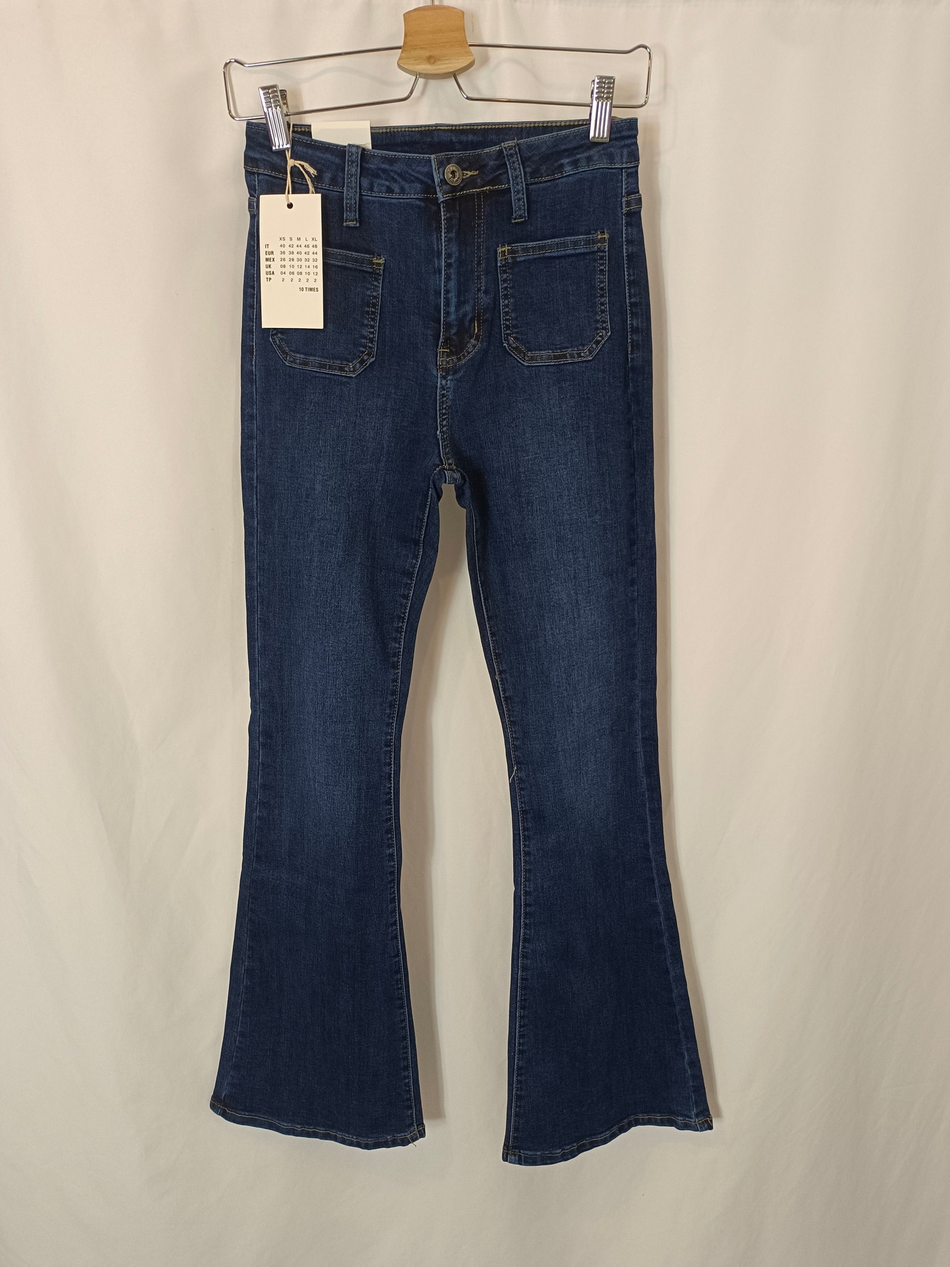 NUEVO CON ETIQUETA. Pantalón oscuro vaquero de campana . Cintura 34cm, largo 102cm