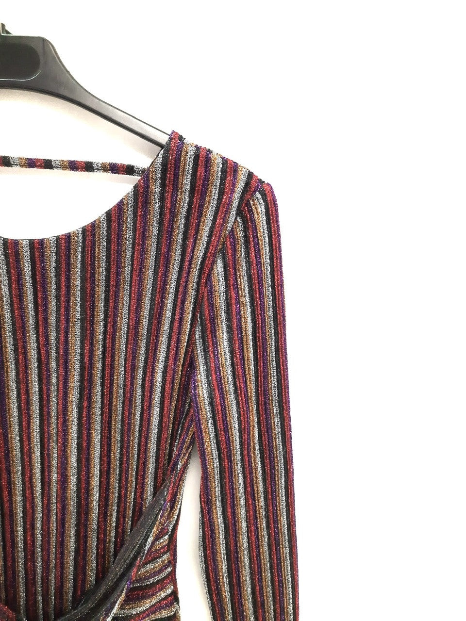 MISS SELFRIDGE. Vestido corto de rayas de colores purpurina. Elástico y ajustado. Largo 87 cm