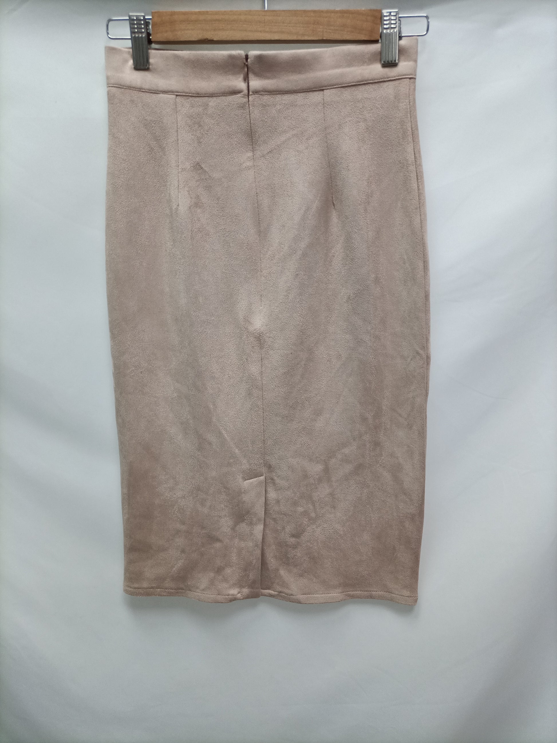 Falda midi rosita antelina muy elástica. Largo 54 cm