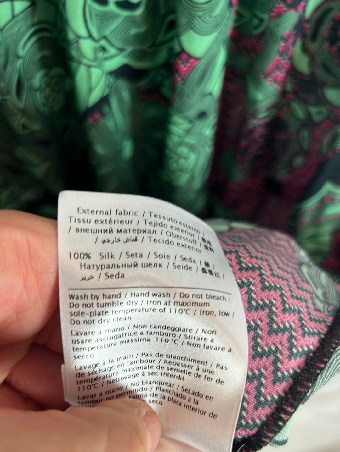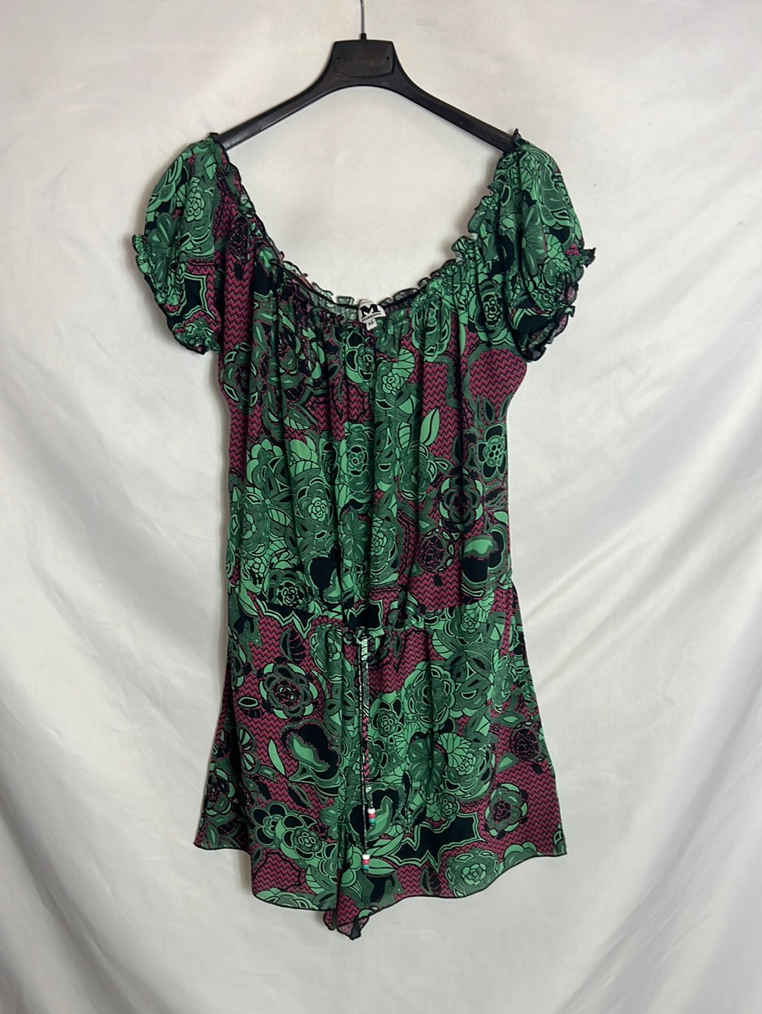 Mono corto seda estampado. Largo 80cm, cintura ajustable, escote elástico