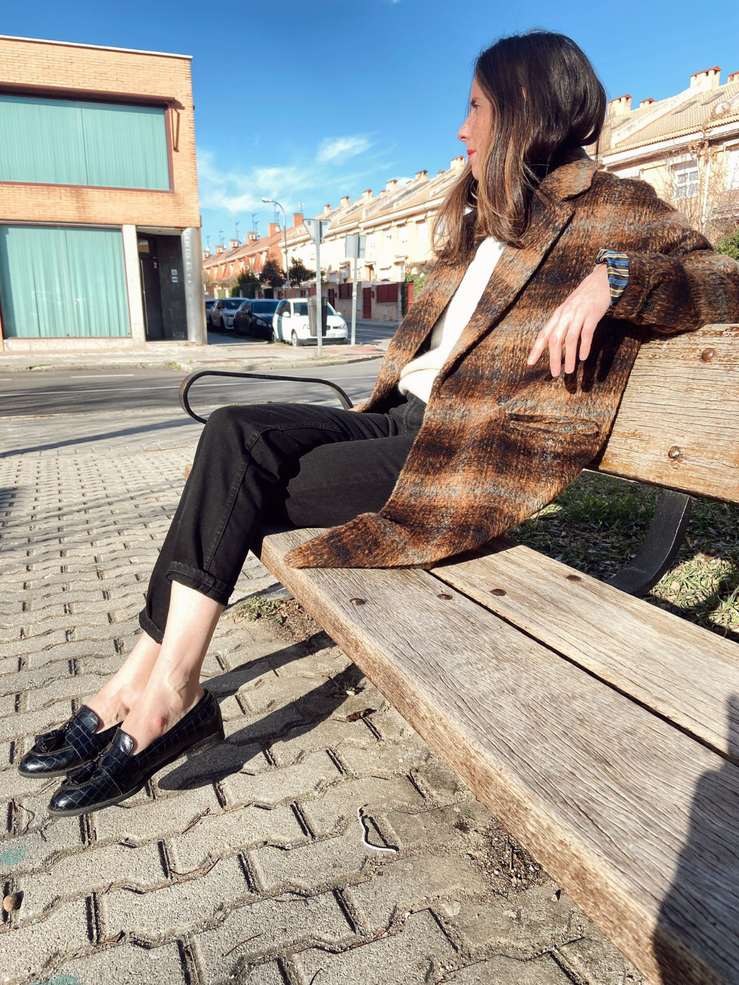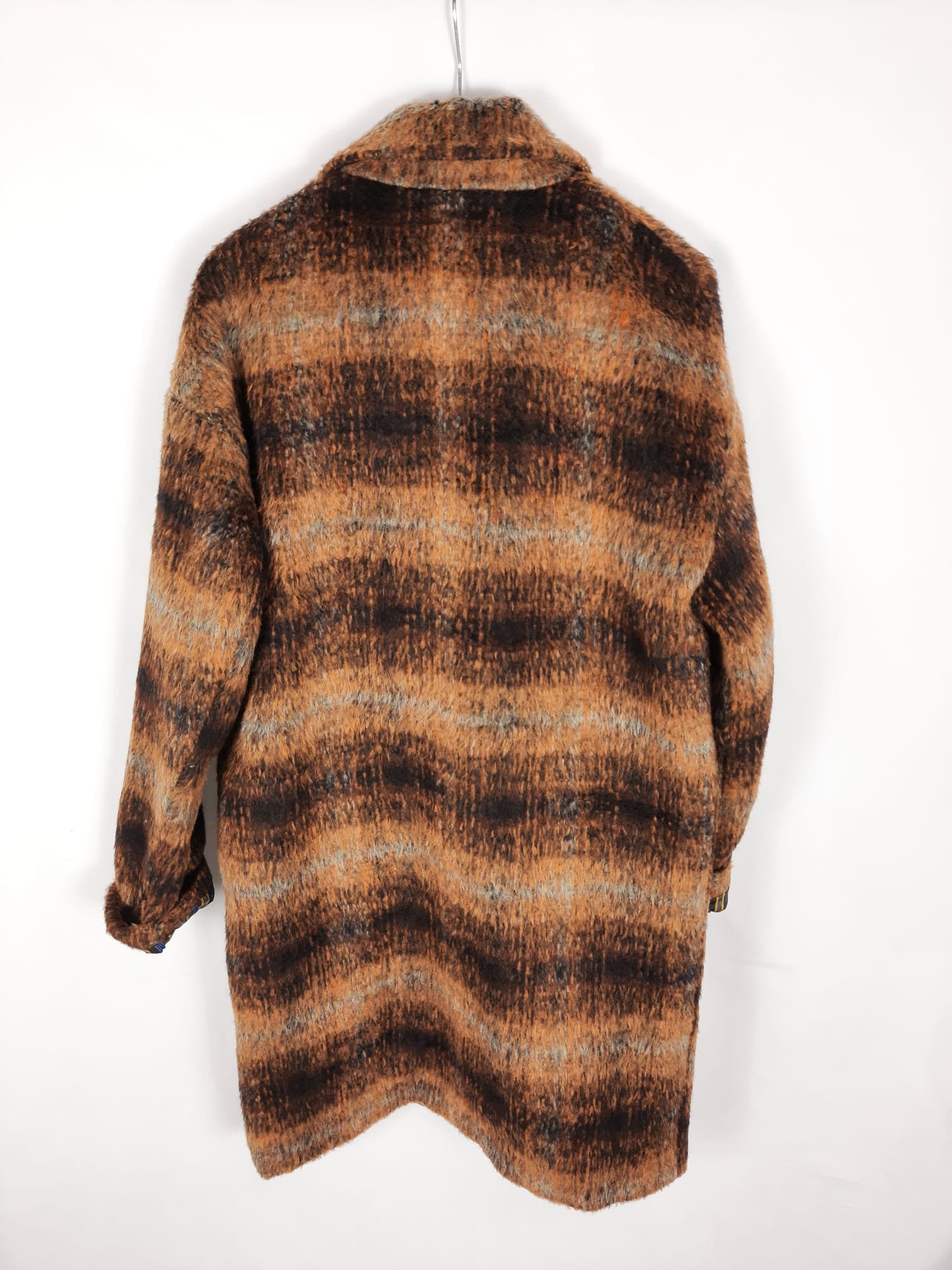 Mkt. Abrigo de paño y pelito marrón con cuadros. Estilo oversized. De sisa a sisa 48 cm largo 99 cm