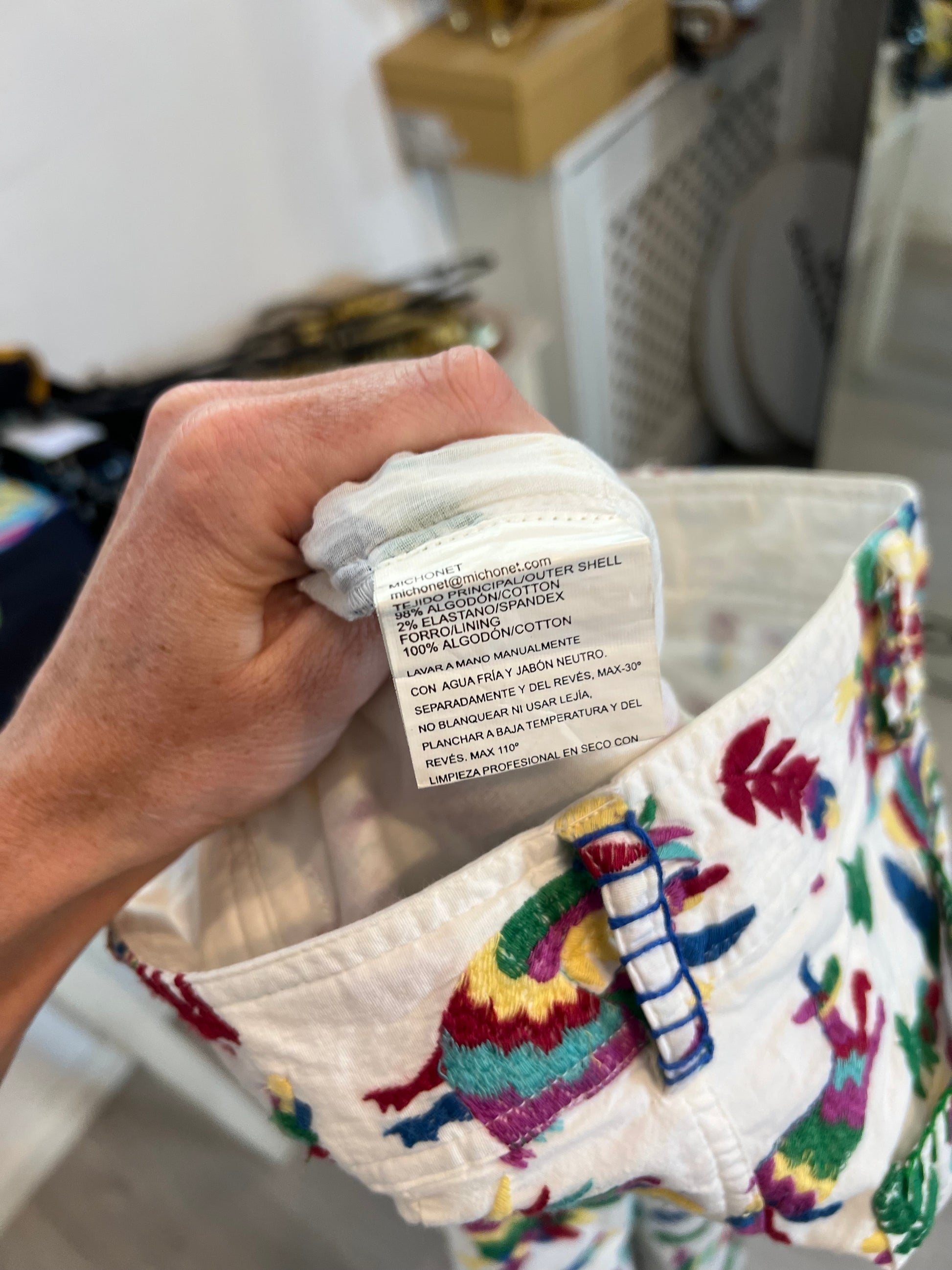 Pantalón blanco bordado. Cintura 36 cm largo 103 cm
