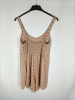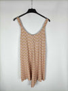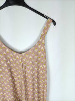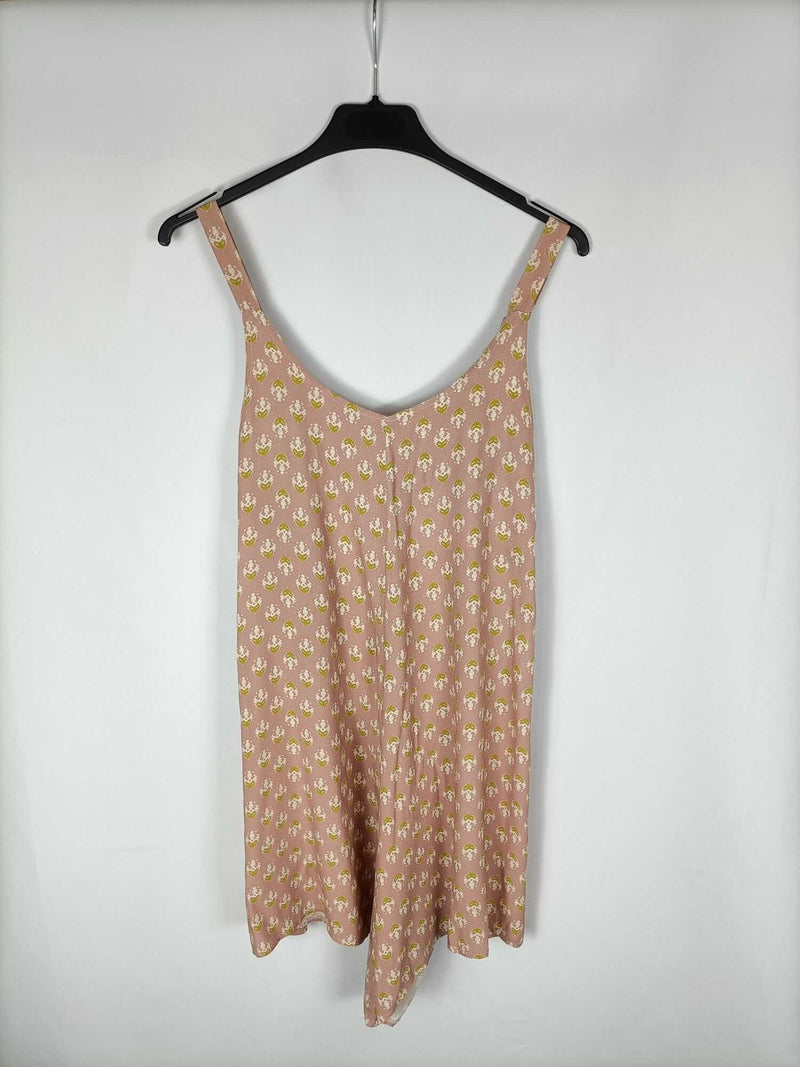 Mockingbird. Mono rosa palo fluido con estampado estilo hippie. Tirantes ajustables. Espalda elástica. Largo 82 cm