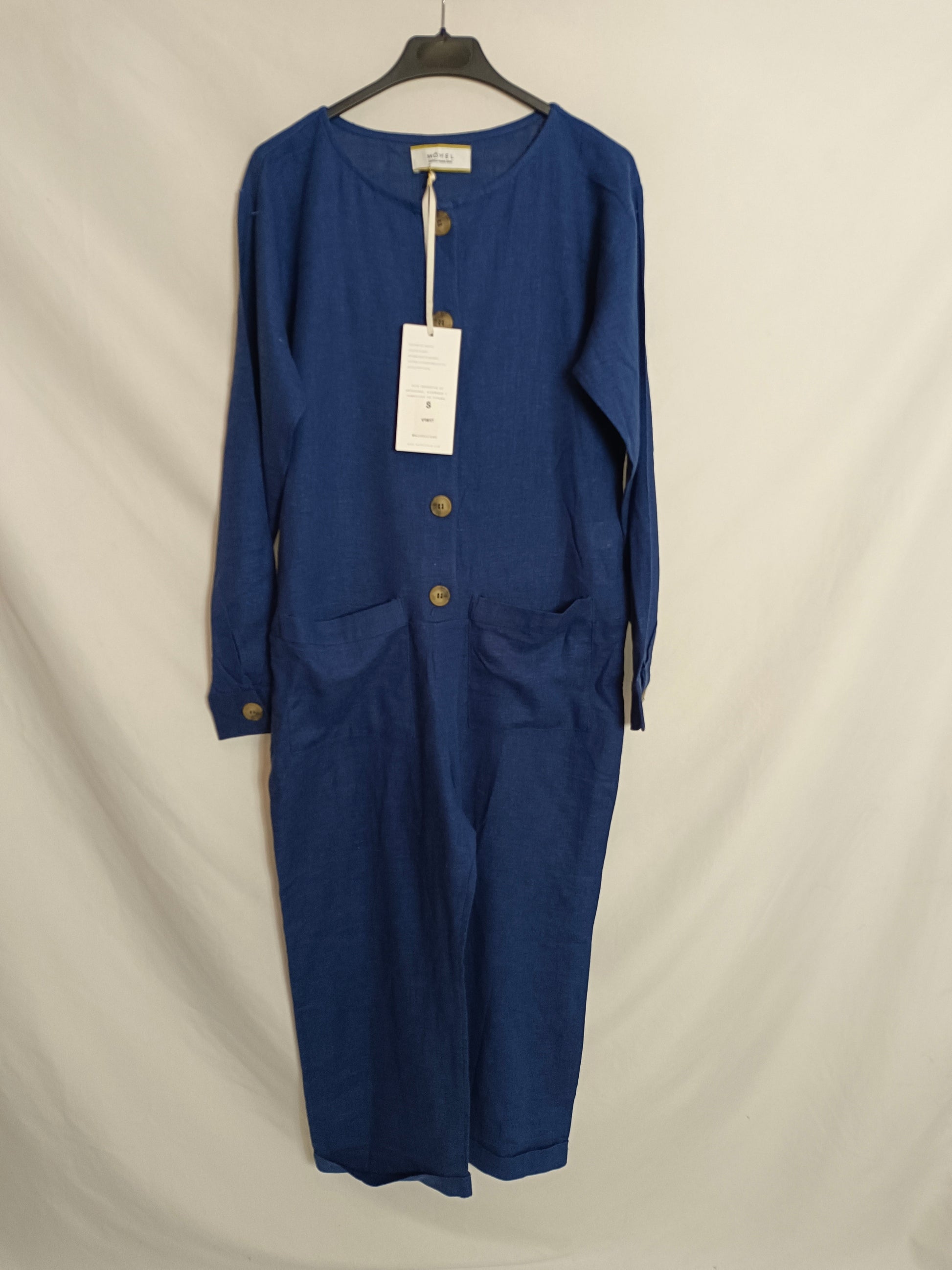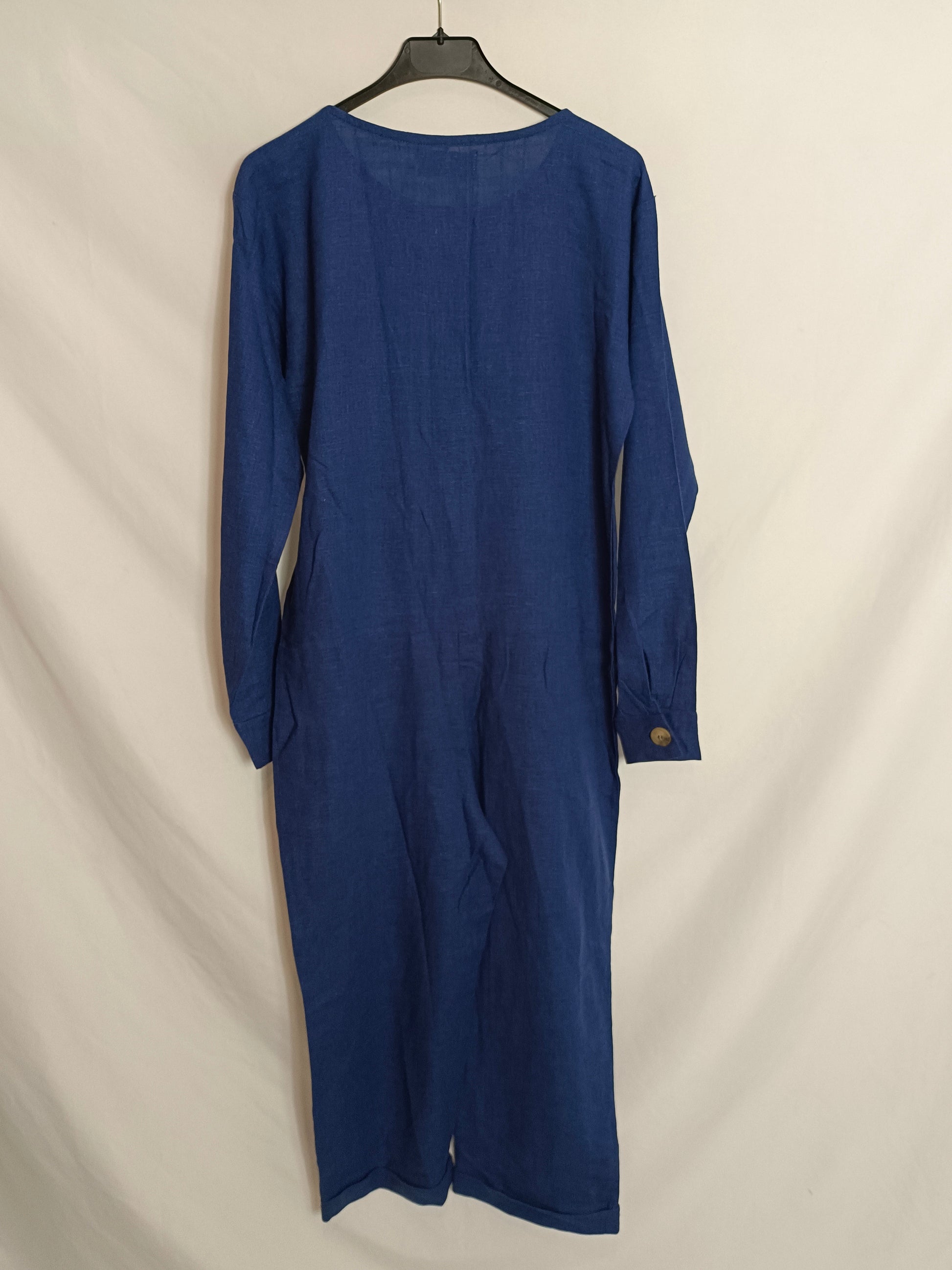 NUEVO CON ETIQUETA. Mono fluido azul abotonado. Lino y viscosa