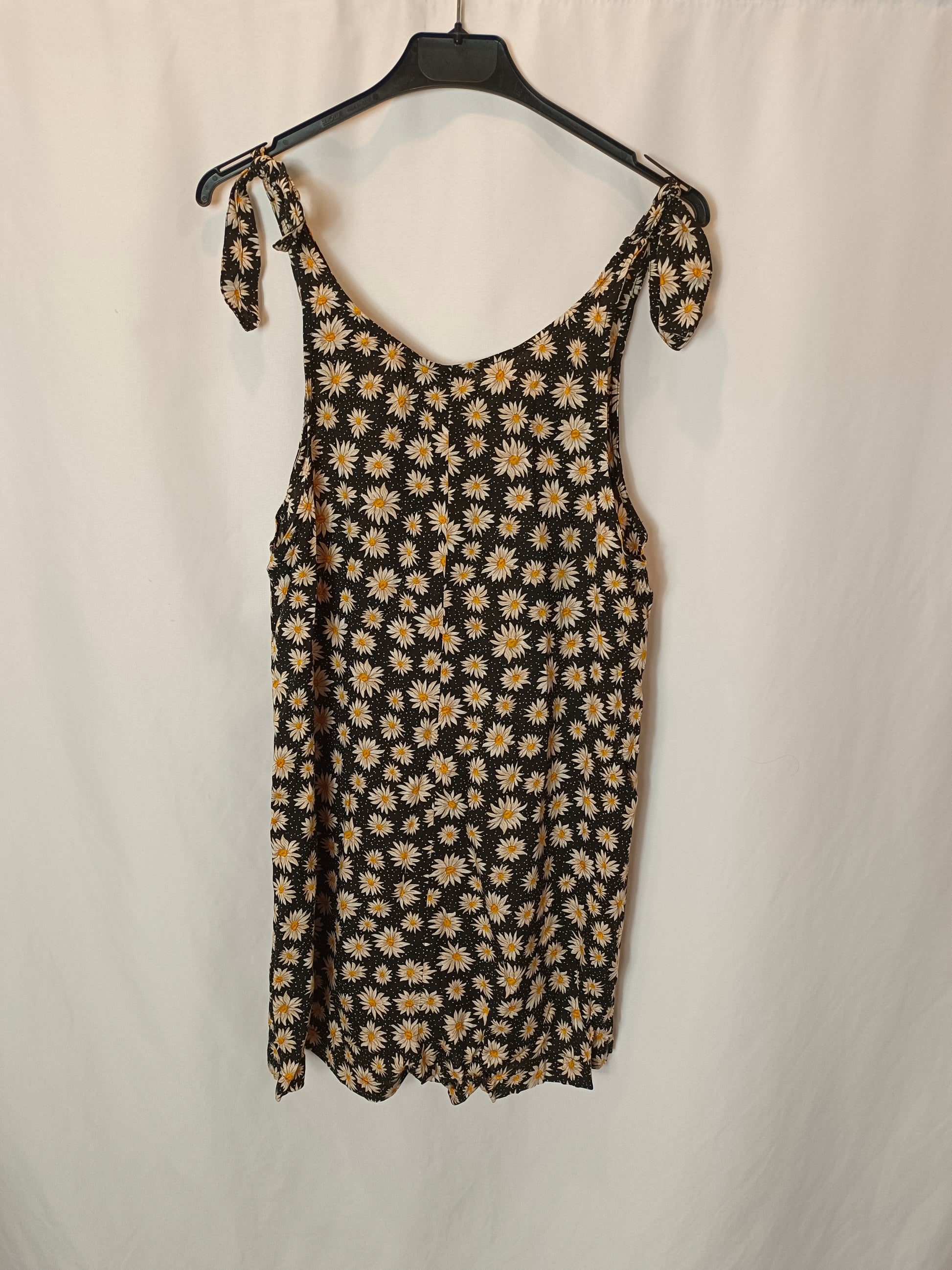 Mono negro con estampado de margaritas y lunares. Tirantes con lazada