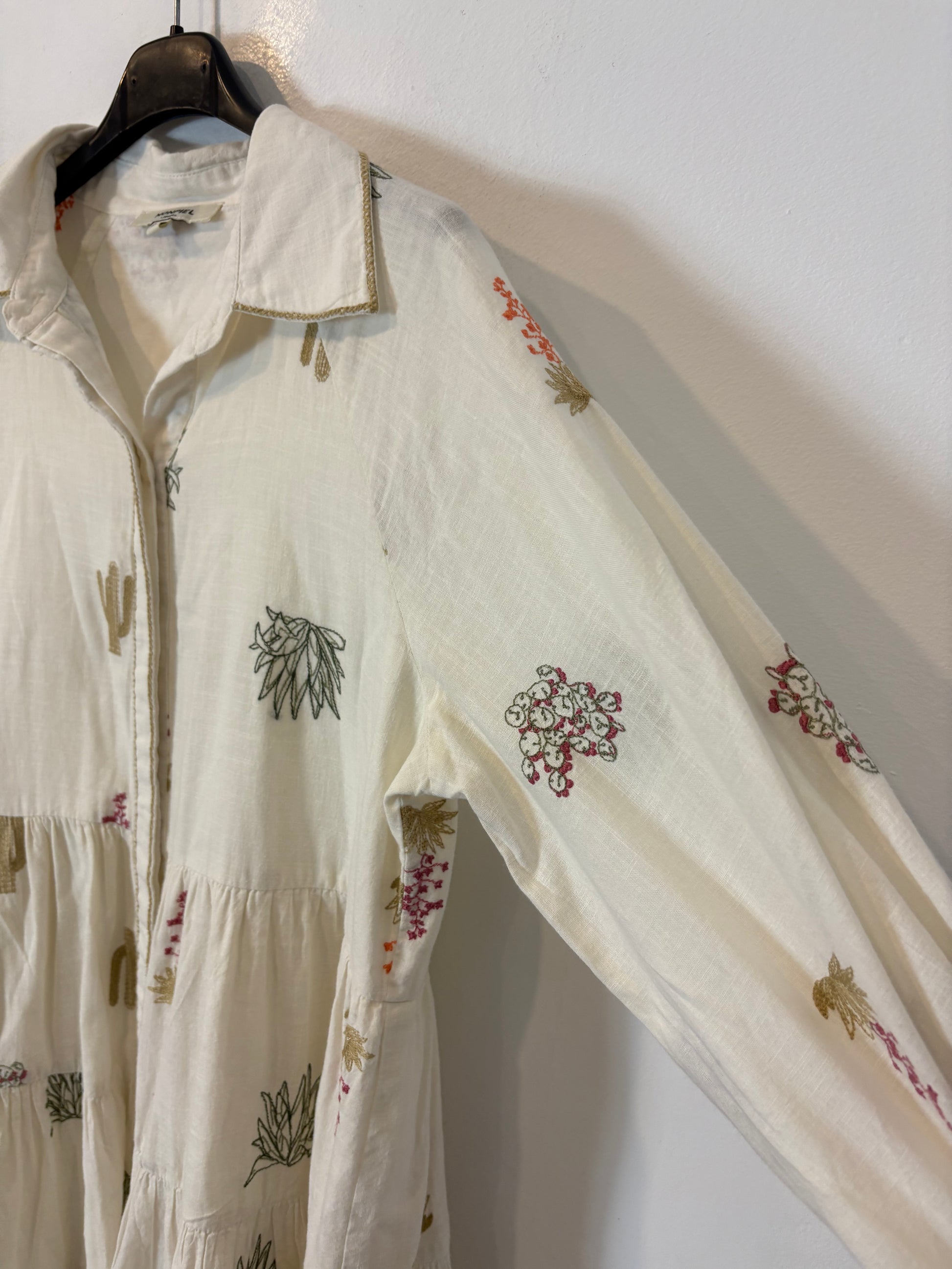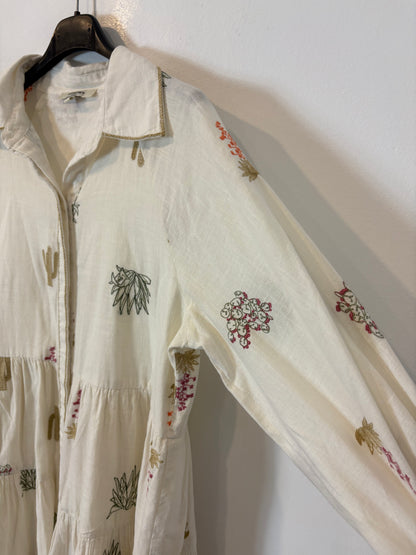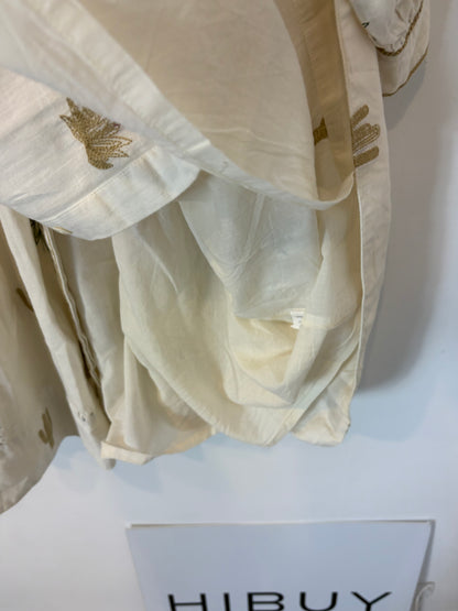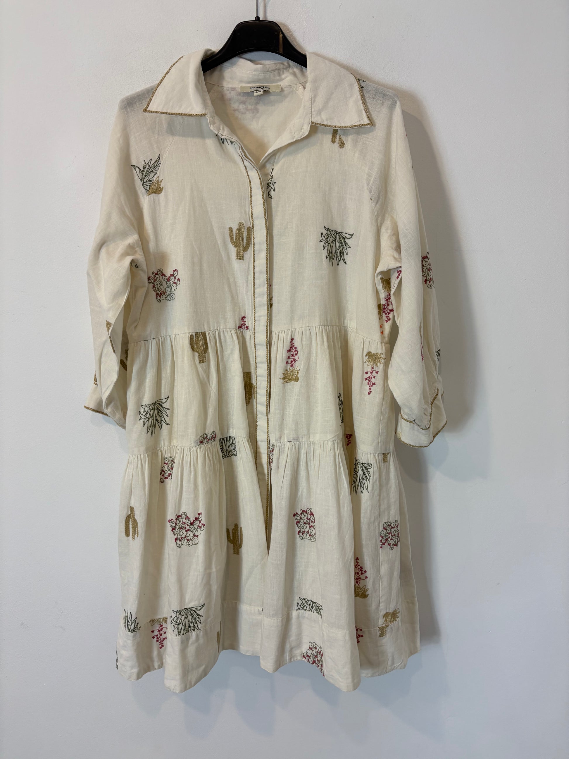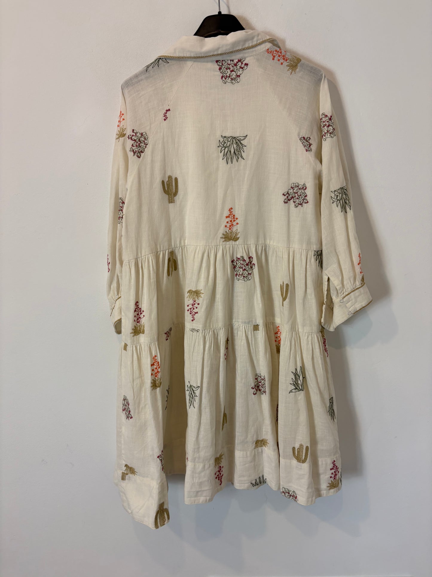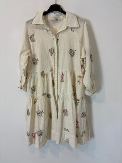 Vestido corto color crudo bordados. Espalda 47 cm ,largo 87 cm