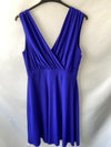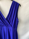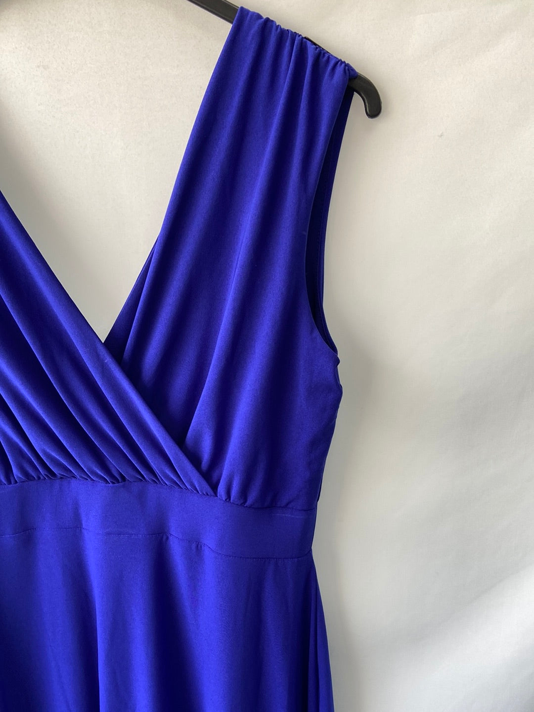 Vestido azul con escote en pico muy elástico y con forro interior. De sisa a sisa 42 cm, largo 95 cm