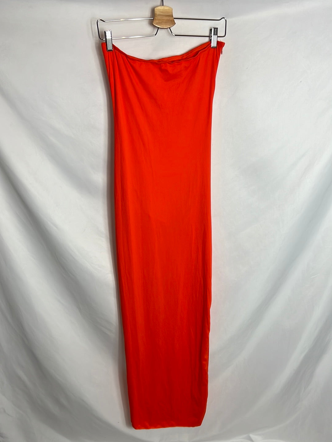 OTRAS. Vestido largo rojo palabra de honor. T M