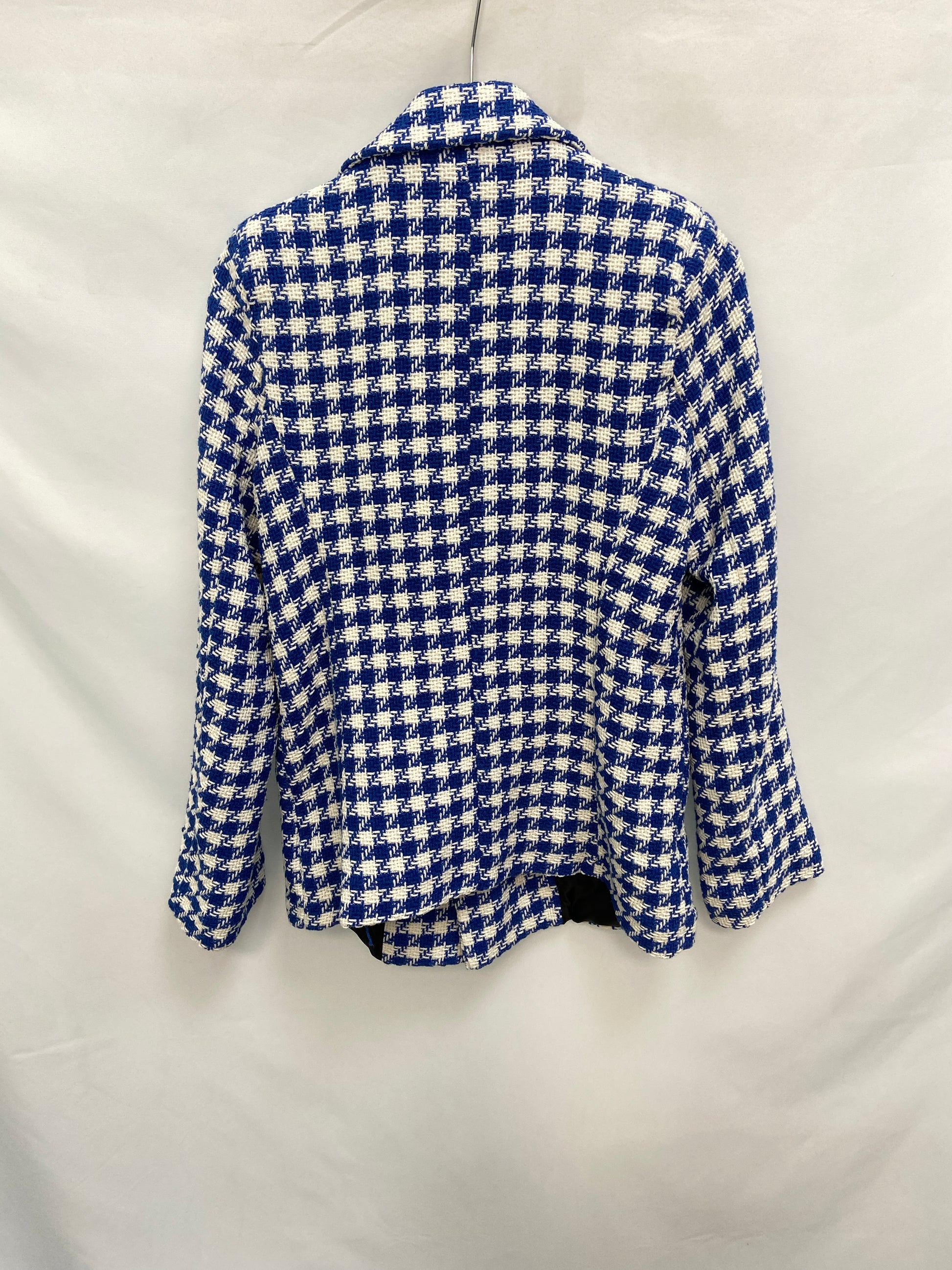 NUEVO CON ETIQUETA. blazer de pata de gallo azul y blanca con detalle de botones en dorado. No elástico. De sisa a sisa 43 cm largo 60 cm