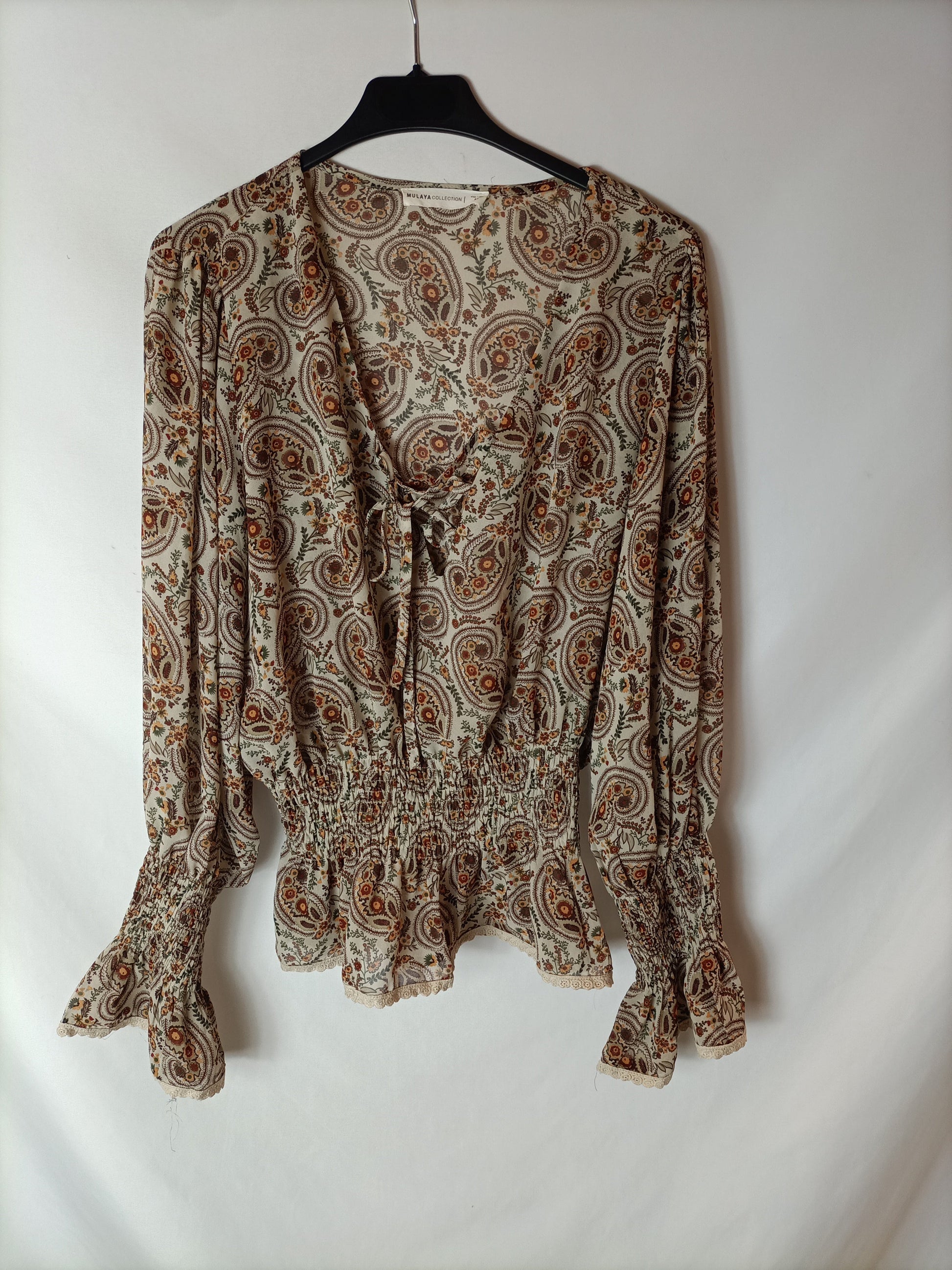 Blusa semitransparente estampada. De sisa a sisa 56 cm